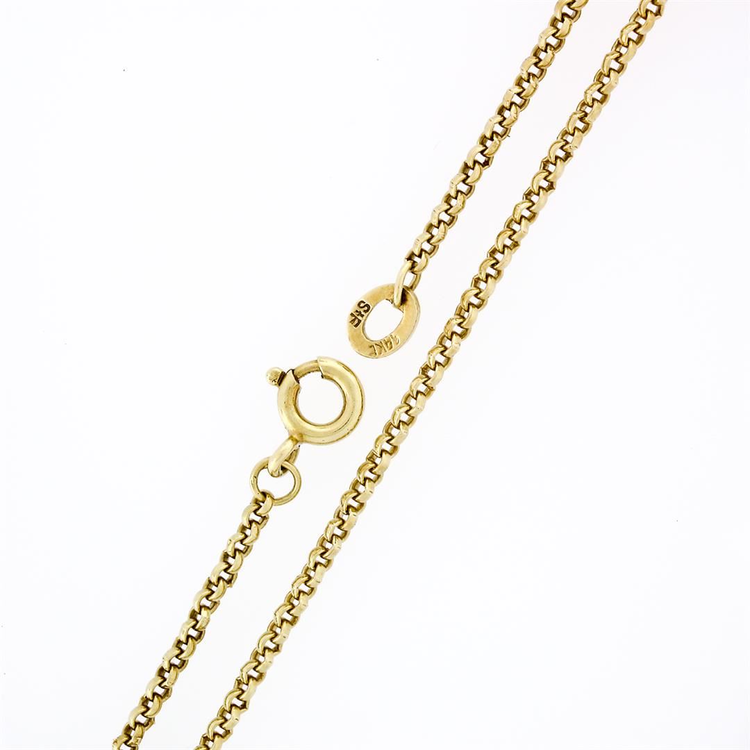 A vintage solid 14k yellow gold pendant necklace, with 1 large rectangular cut natural quartz (19.96x15.74mm). 18 inch Fine Rolo link chain, 11.49 grams total weight, pendant measures 30.21x15.92mm.