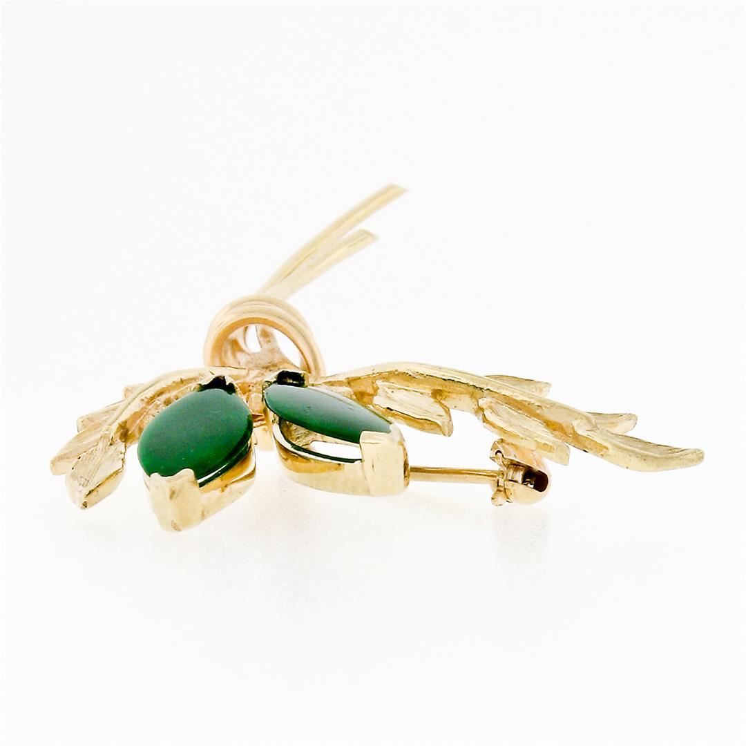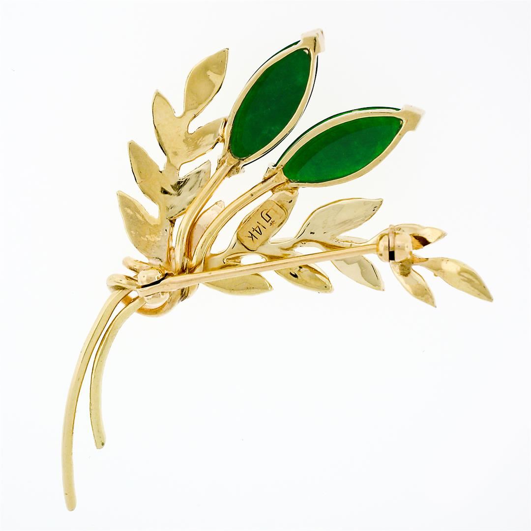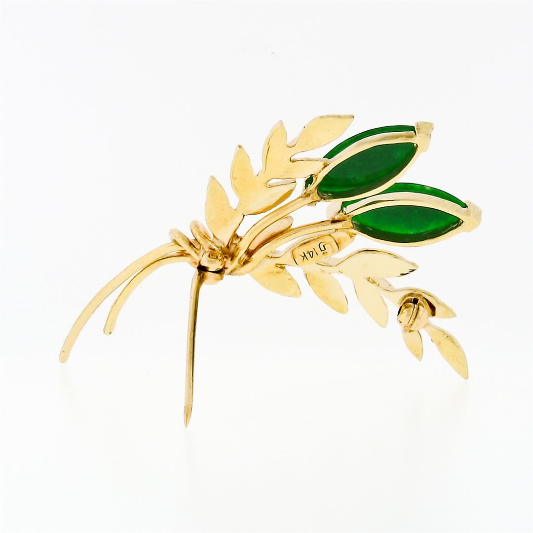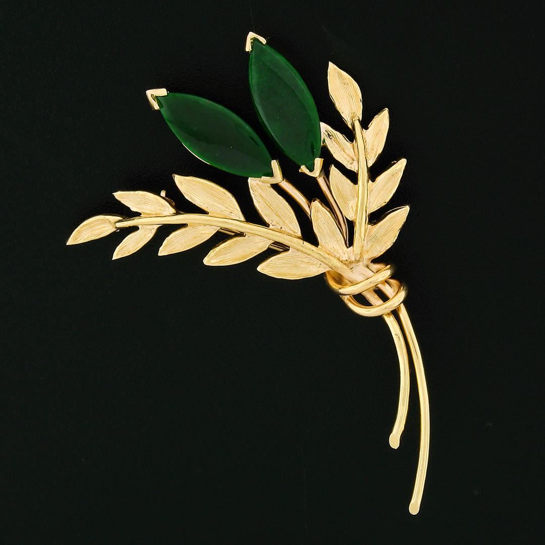 Vintage 14k Gold Marquise Jade Textured Branch Leaf Flower Bundle Brooch Pin