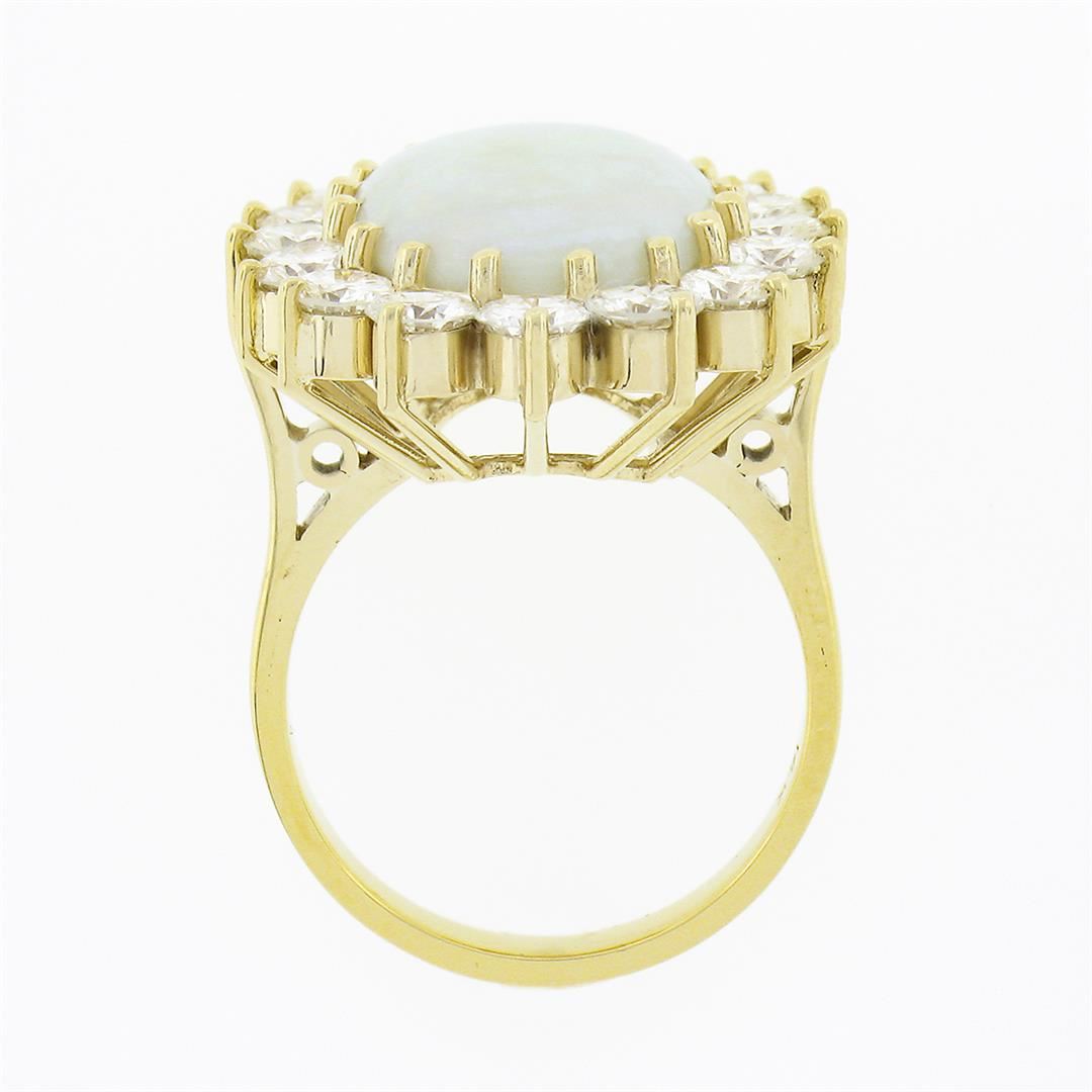 Vintage 14k Gold Oval Cabochon Opal w/ 4.0 ctw Round Diamond Halo Cocktail Ring