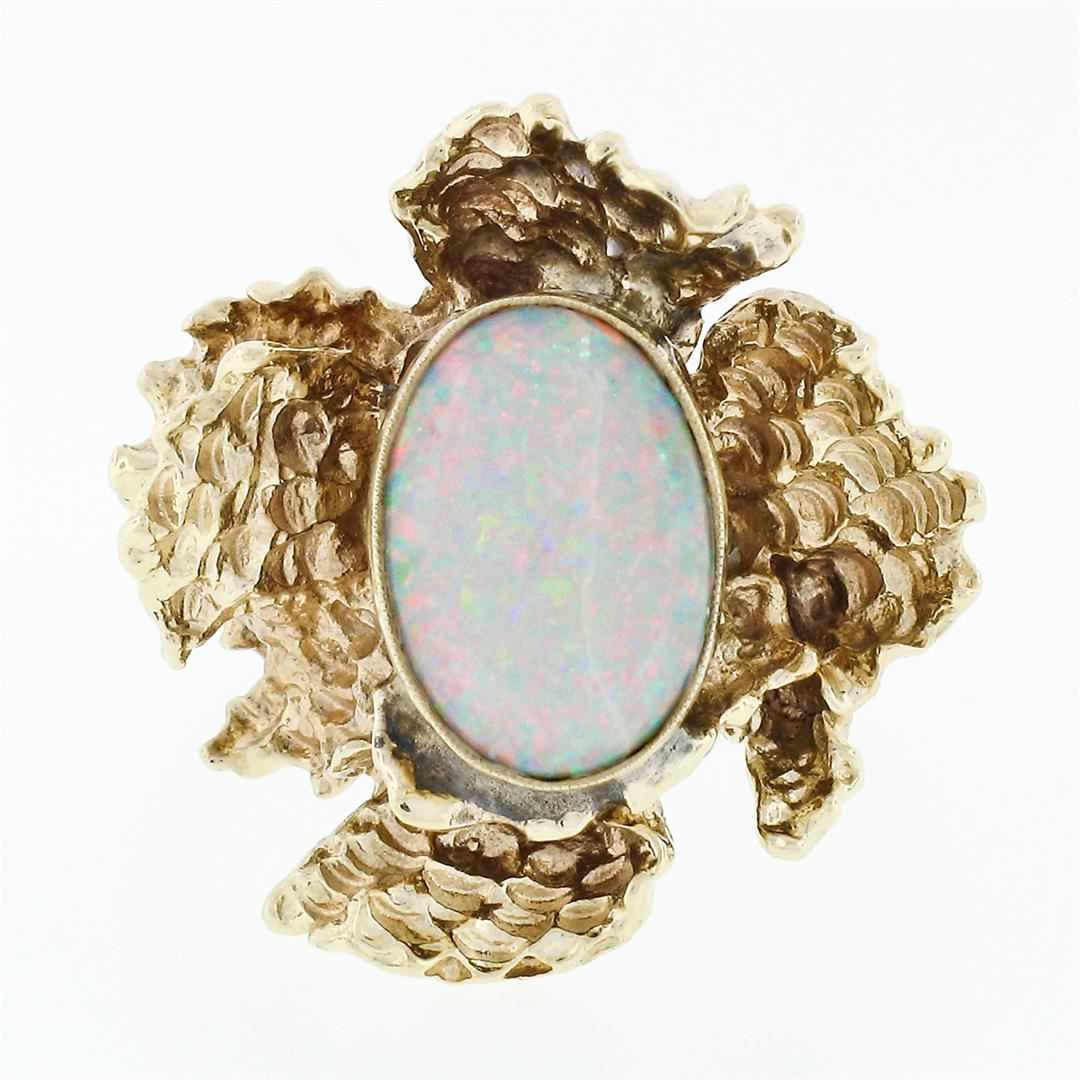 Vintage 14k Gold Oval Opal Solitaire & Nugget Textured Free Form Cocktail Ring