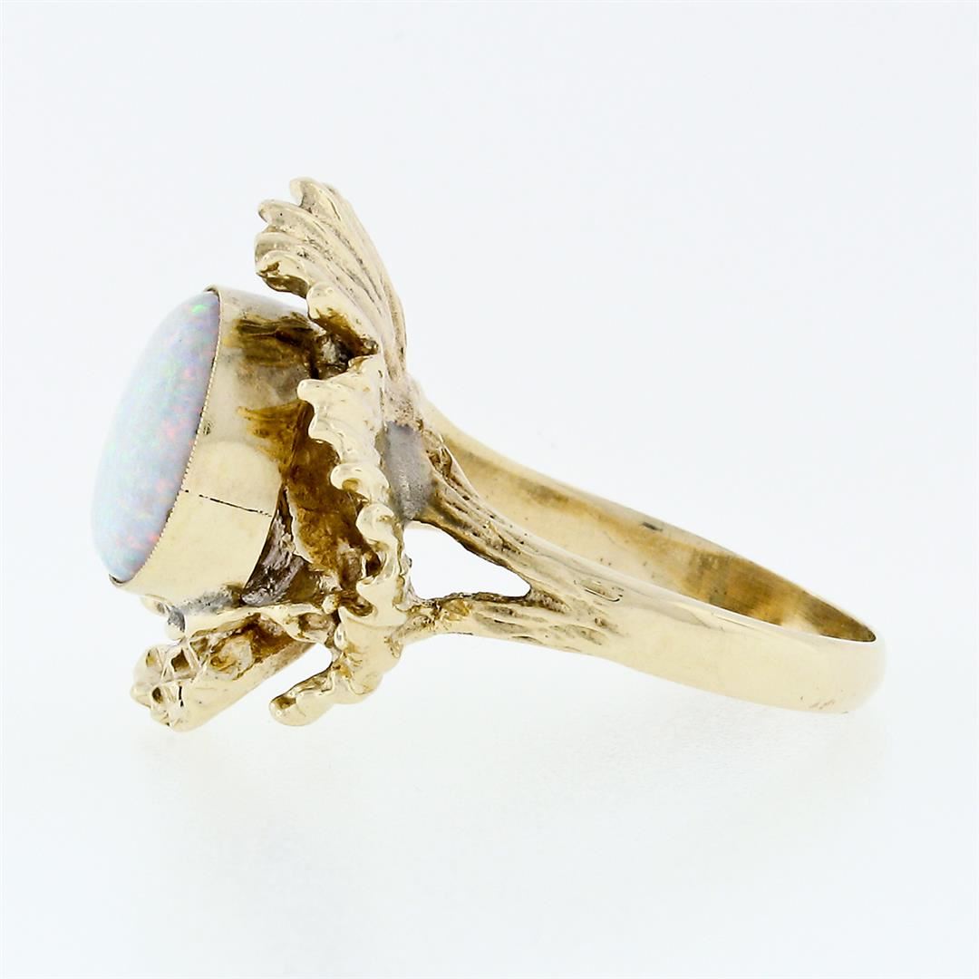 Vintage 14k Gold Oval Opal Solitaire & Nugget Textured Free Form Cocktail Ring