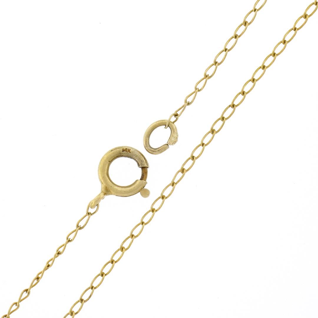 A solid 14k yellow gold pendant necklace, with 1 tear drop shape carved cameo shell (24.20x12.90mm). 16 inch curb link chain, 2.93 grams total weight, pendant measures 33x13.75mm.