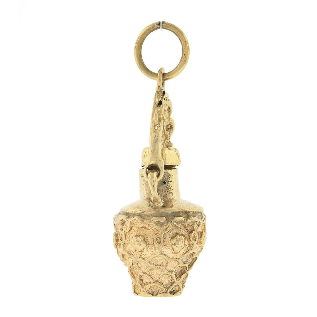 A vintage solid 14k yellow gold jar charm pendant. The pendant weighs a total of 6.50 grams, measures 34.9x12.6mm including the bail.