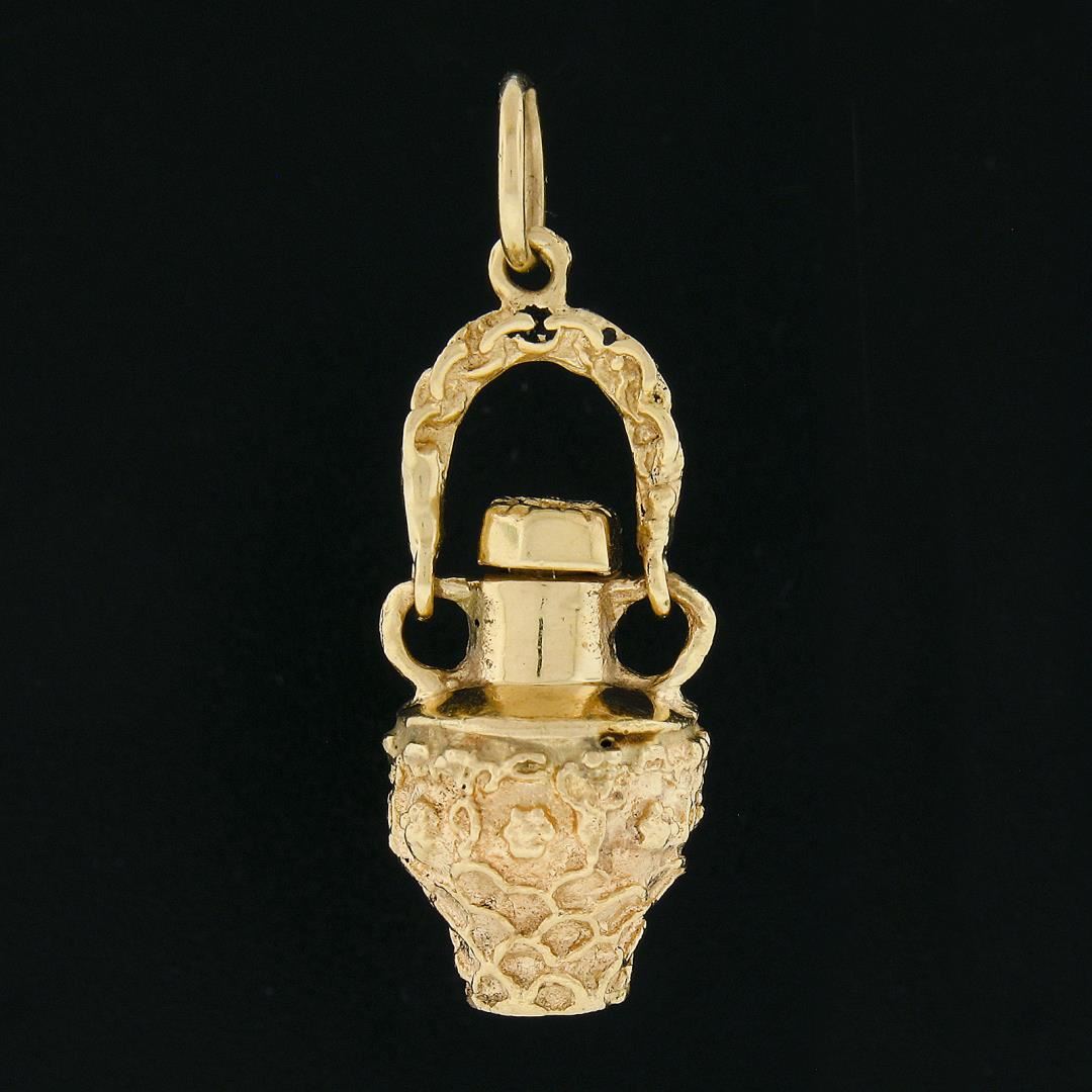A vintage solid 14k yellow gold jar charm pendant. The pendant weighs a total of 6.50 grams, measures 34.9x12.6mm including the bail.