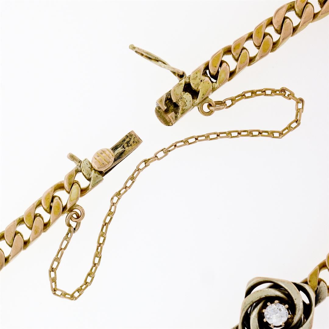 A vintage solid 14k yellow and white gold bracelet, with 1 transitional cut natural diamond (F - VS1 ; 0.17ct). It weighs a total of 14.37 grams, measures 6.40mm wide, and measures 7 inches in length.
