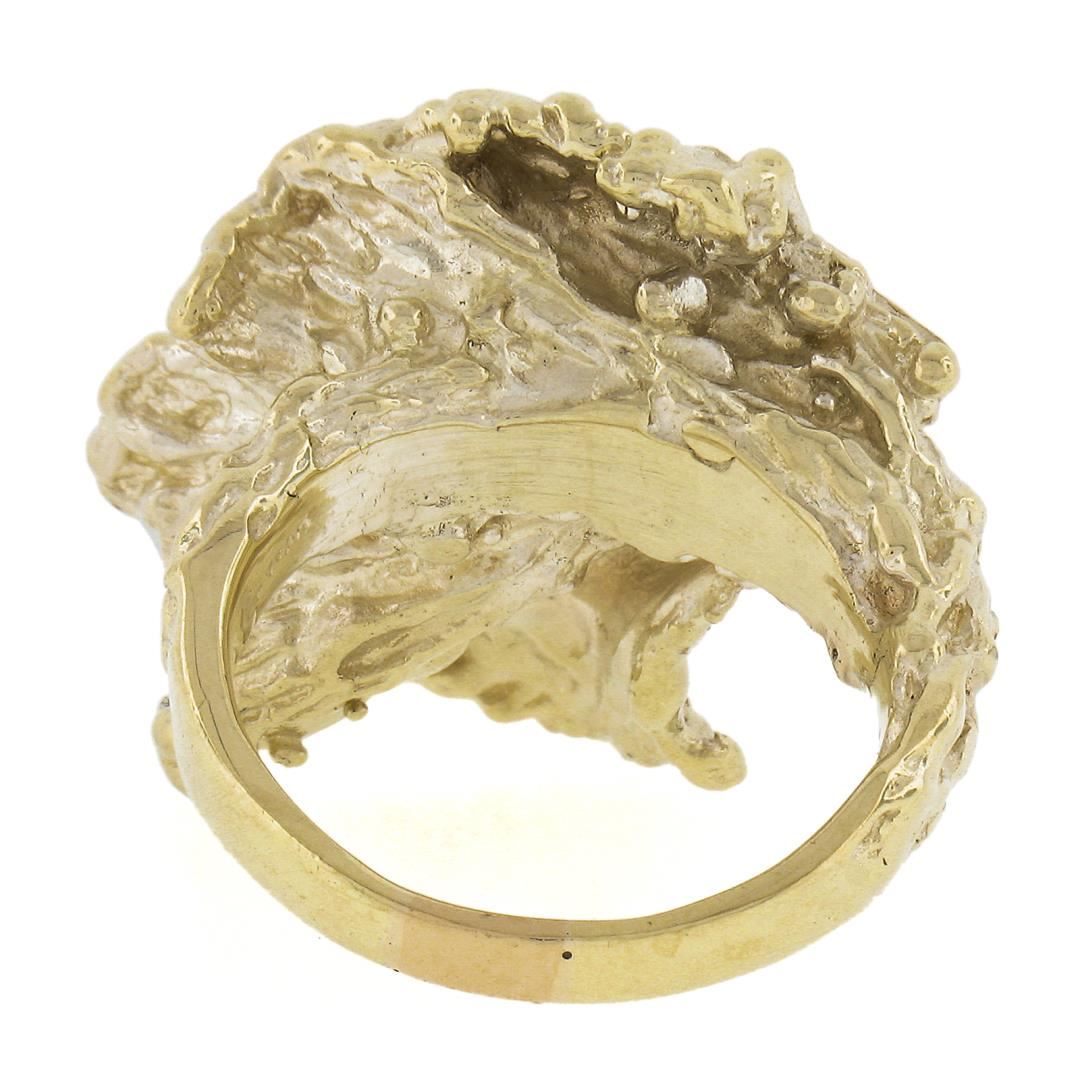 A vintage solid 14k yellow & white gold nugget statement ring, with 5 round cut natural diamonds (G/H - VS1/VS2 ; 0.90ctw). The ring is size 5.0, weighs a total of 12.66 grams, and measures 20.8mm wide.