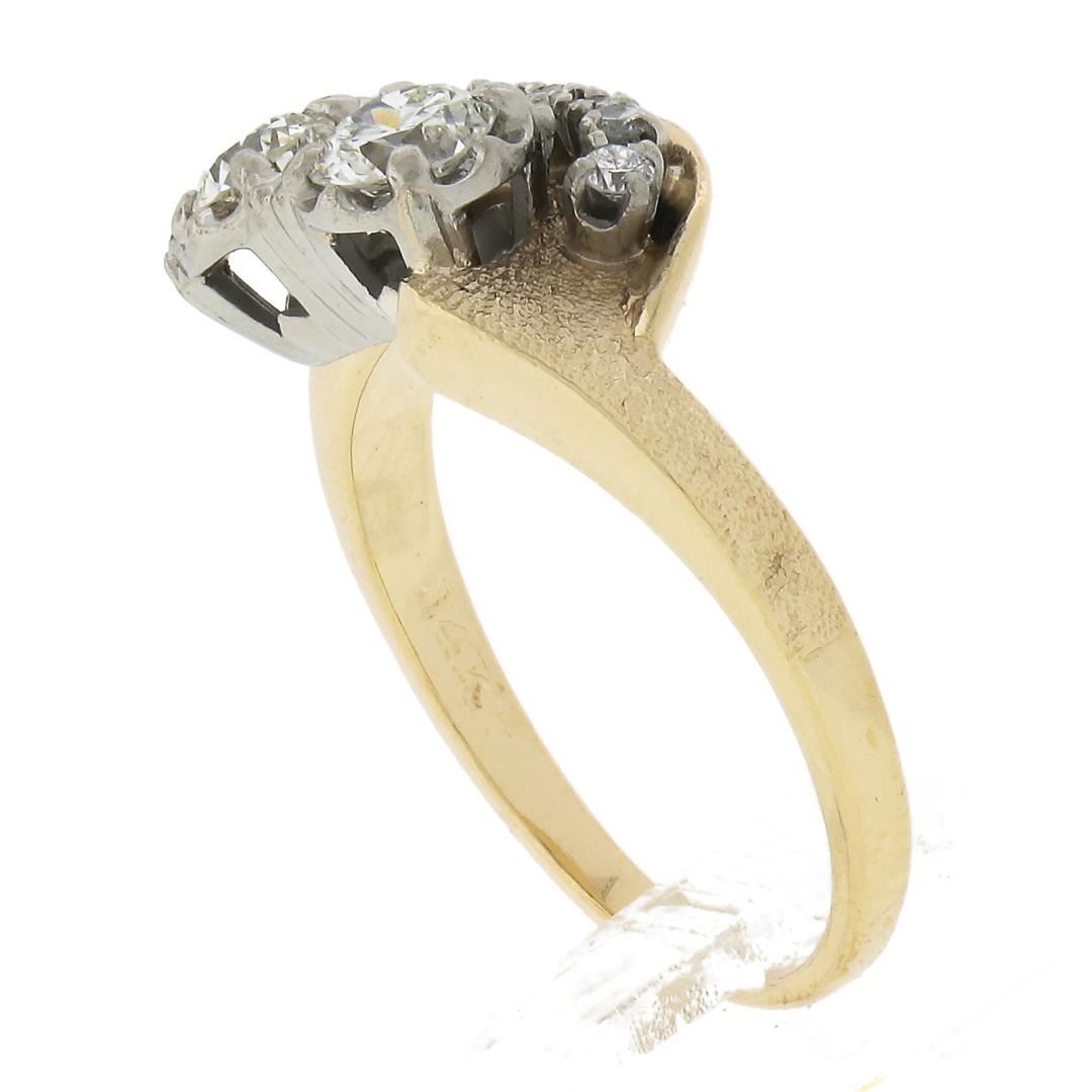 Vintage 14k TT Gold .82ct Diamond Textured & Polished Statement Cocktail Ring