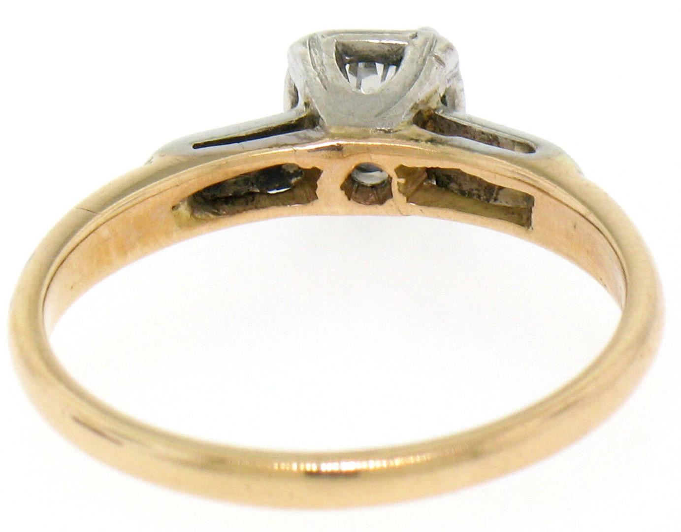 A vintage solid 14k yellow and white gold solitaire ring, featuring 1 old european cut natural diamond (G- VS2; 0.53ct). The ring is size 8.25, weighs a total of 3.1 grams, and measures 6.21mm wide.