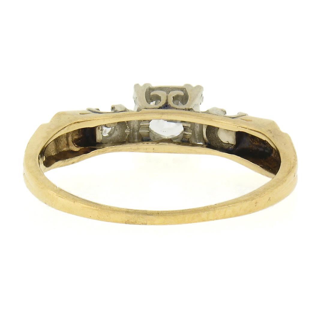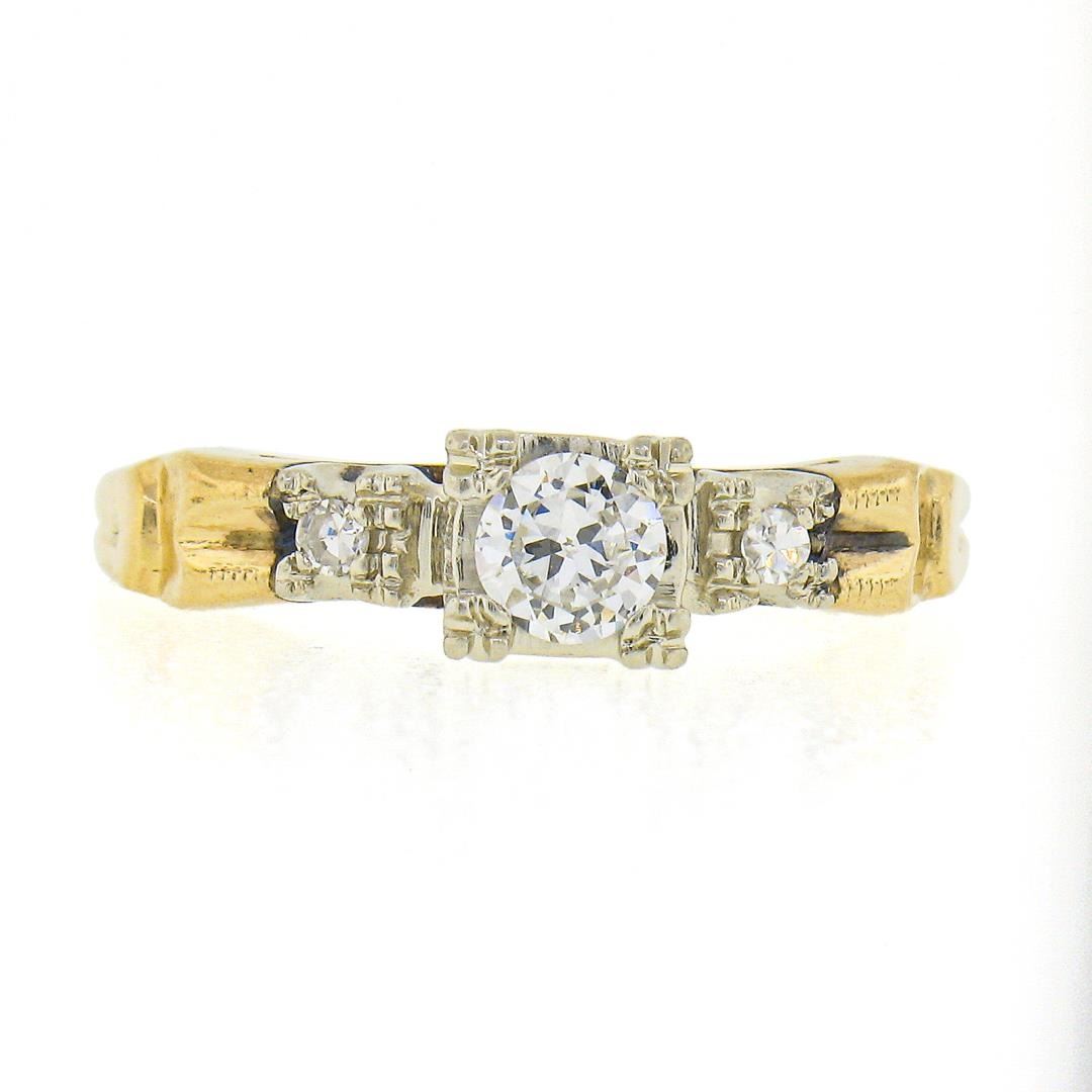 Vintage 14k Two Tone Gold Old European Cut Diamond Solitaire Engagement Ring