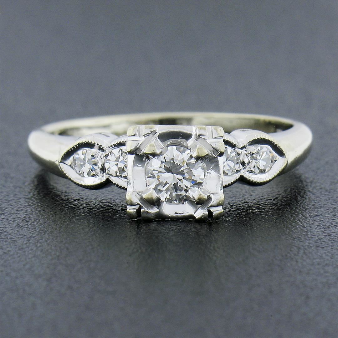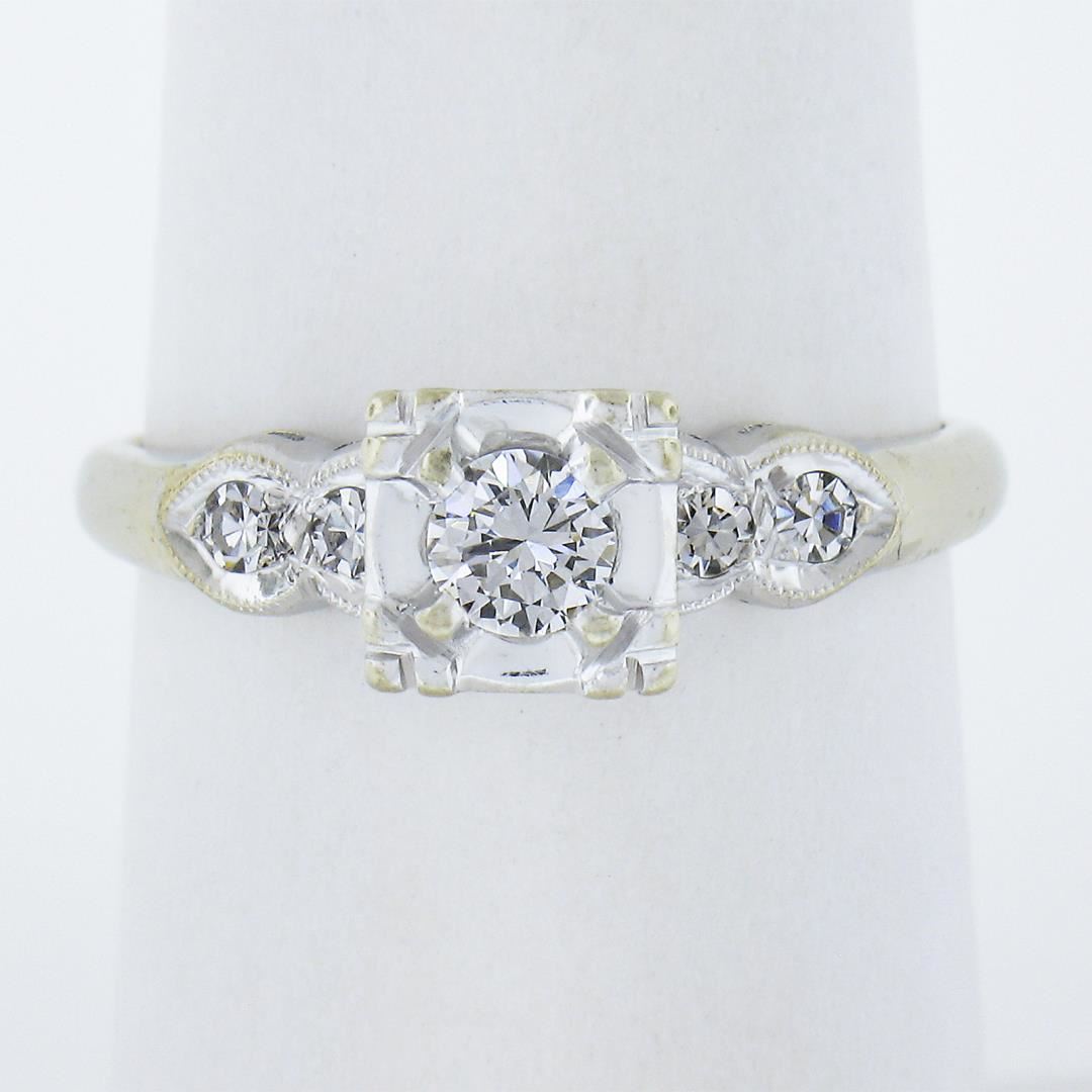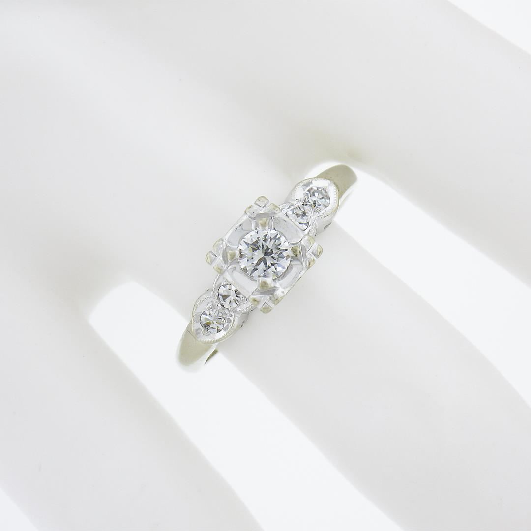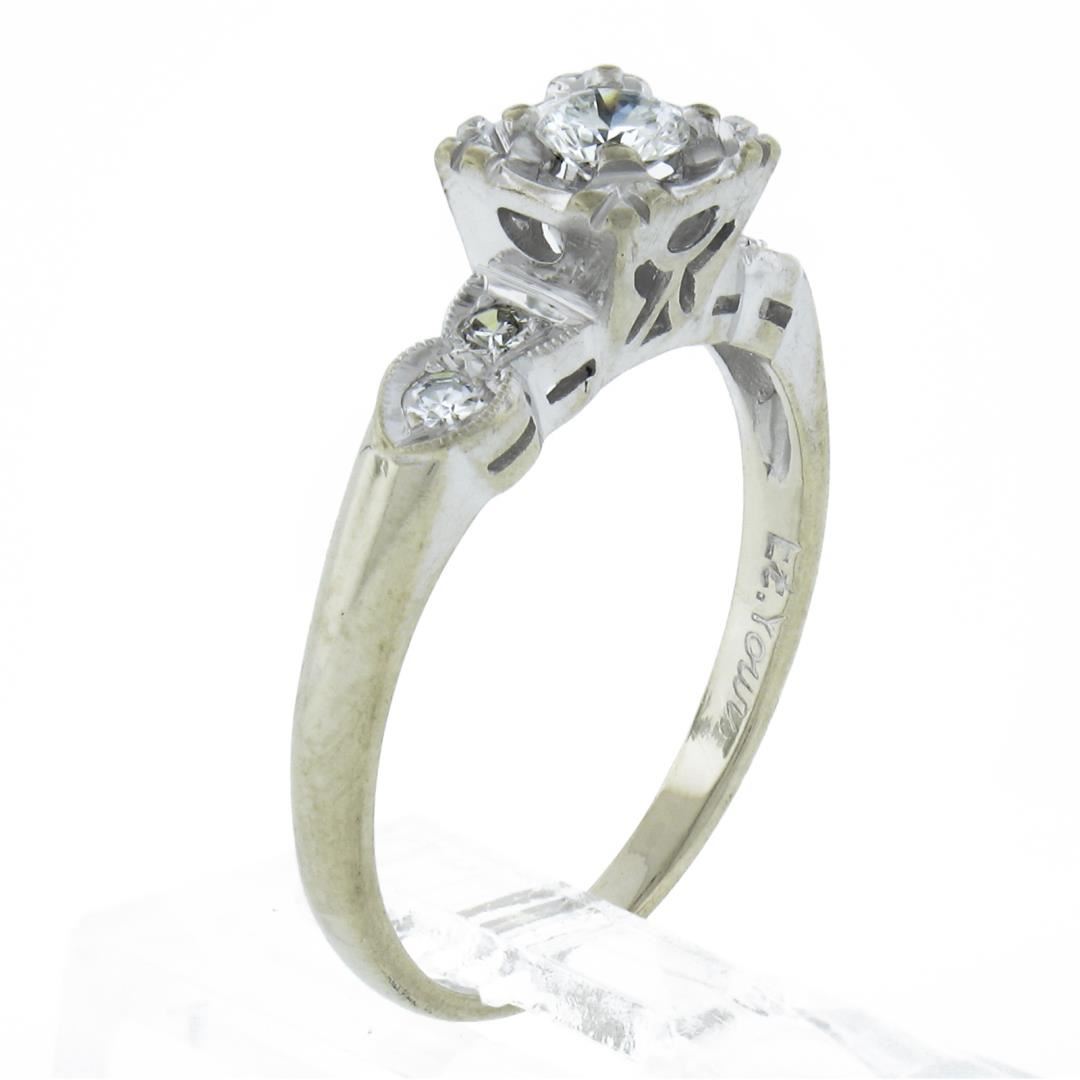 Vintage 14k White Gold 0.35 ctw Round Brilliant Diamond Solitaire Engagement Rin