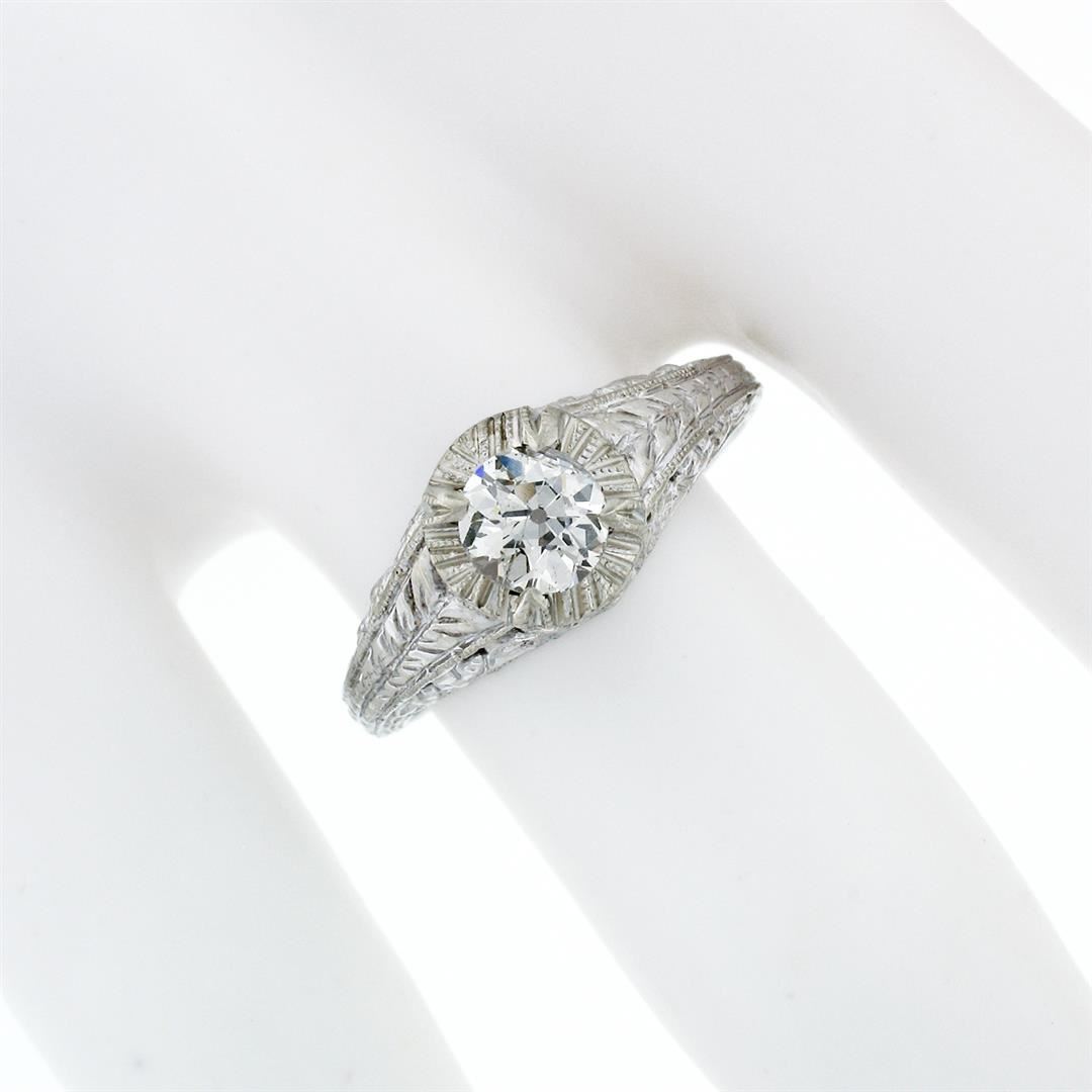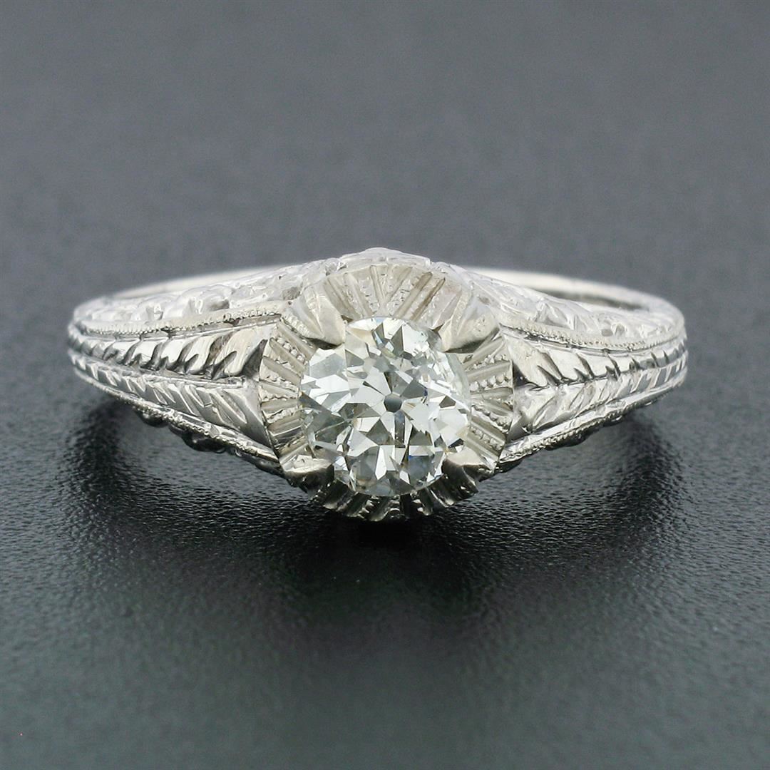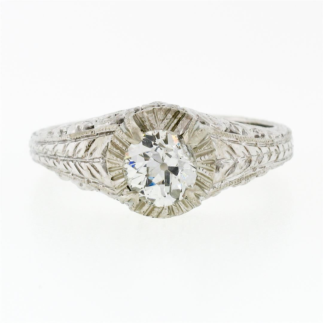 A vintage solid 14k white gold solitaire ring, with 1 old european cut natural diamond (I - I1 ; 0.68ct). The ring is size 6.5, weighs a total of 4.35 grams, and measures 8.28mm wide.