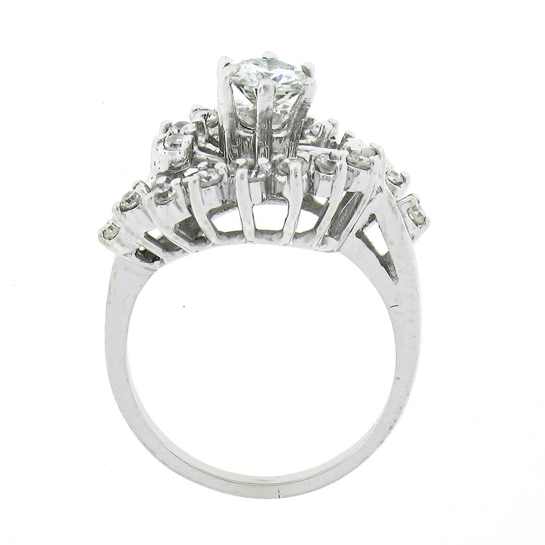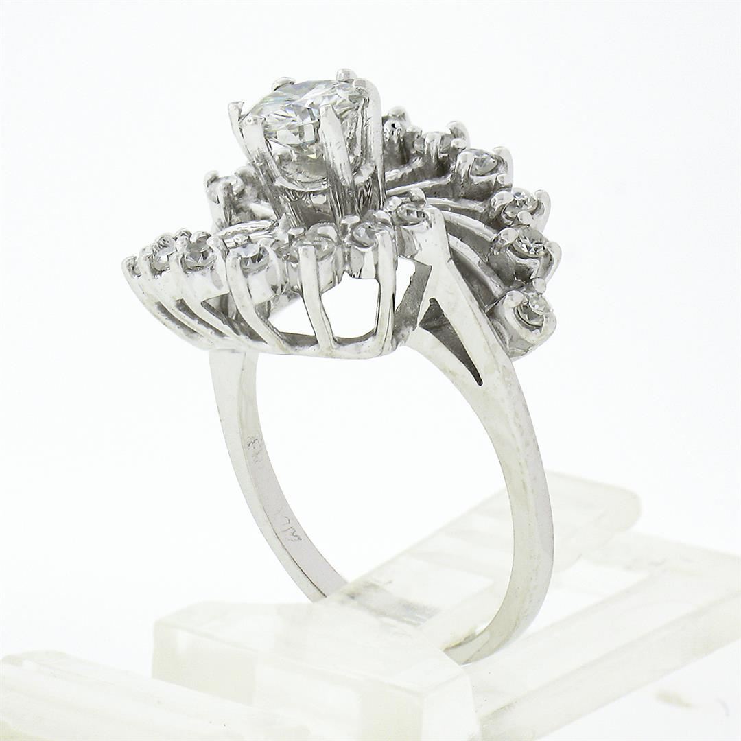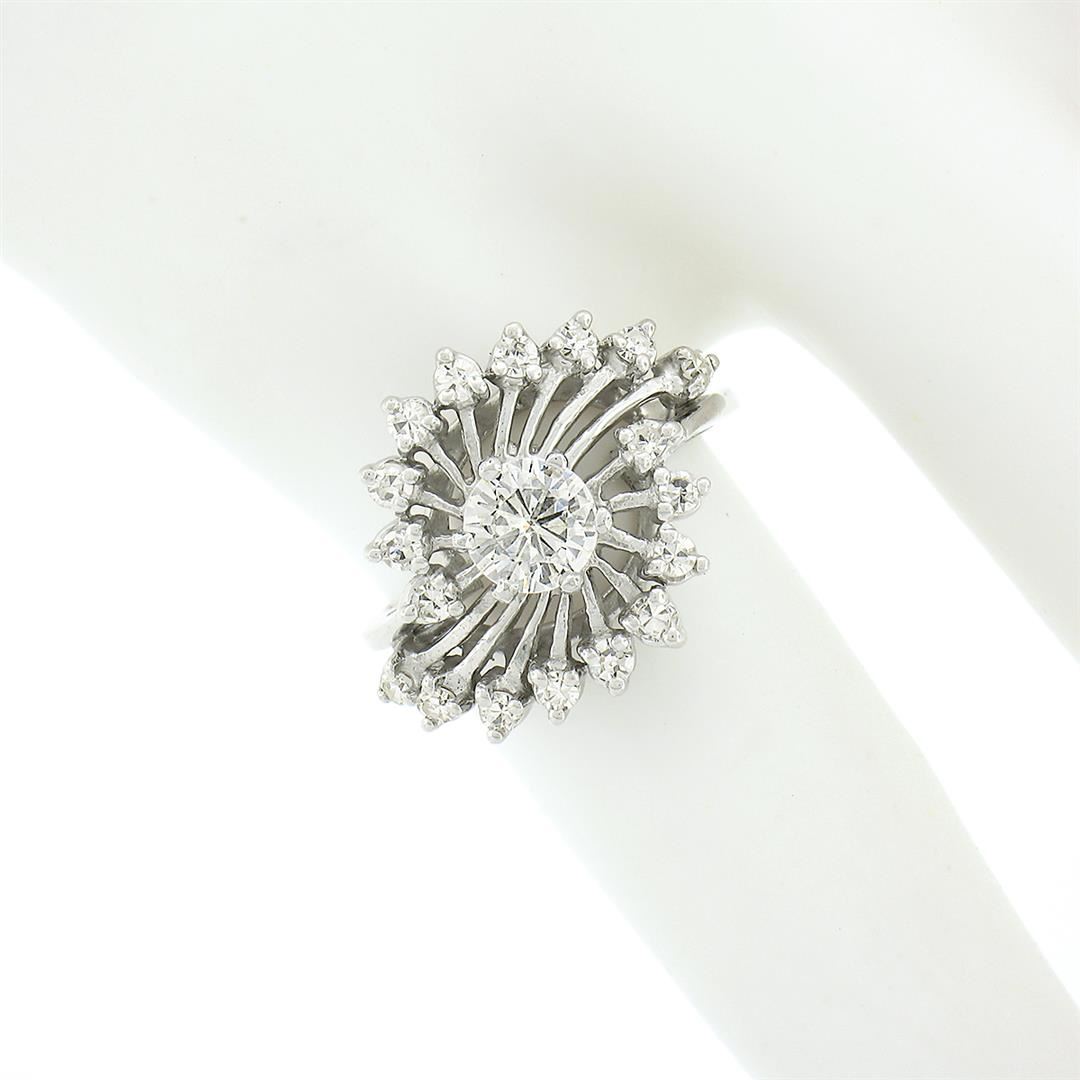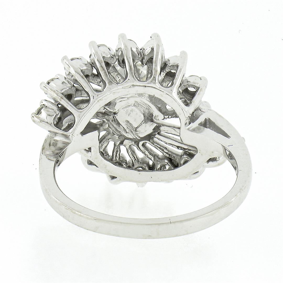 A solid 14k white gold cocktail ring, with 1 round brilliant cut natural diamond (I - VS1 ; 0.50ct), surrounded with 18 old single cut natural diamonds (G/H - VS1/VS2 ; 0.30ctw). The ring is size 4.0, weighs a total of 3.96 grams, and measures 14.65mm w