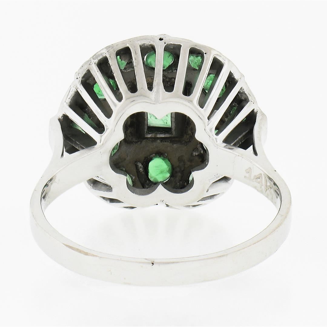 Vintage 14k White Gold 1.0 ctw Bezel Green Emerald Platter Cluster Cocktail Ring