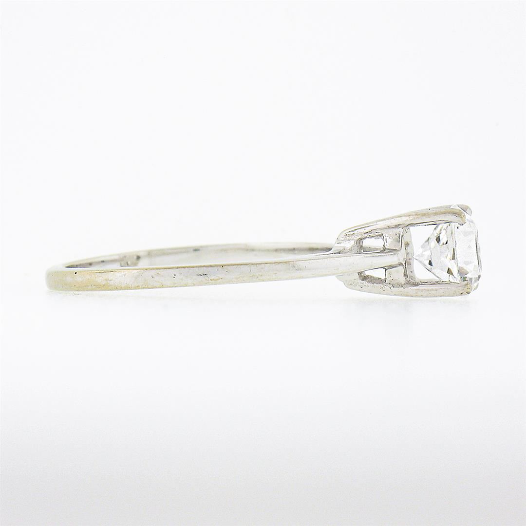A vintage solid 14k white gold solitaire ring, with 1 round brilliant cut cubic zirconia (5.7mm). The ring is size 5.5, weighs a total of 1.80 grams, and measures 5.7mm wide.