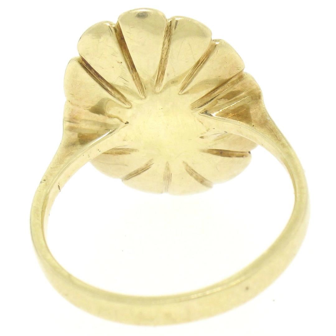 One Vintage 14k Yellow Gold 0.25ctw Round Ruby Cluster Brushed Texture Flower Ring. Item Details: Material: Solid 14k Yellow Gold, Weight: 3.46 Grams, Stone(s): (7) Natural Genuine Rubies - Round Cut - Prong Set - Rich Blood Red Color, Total Carat Weight: 0.25 (approx.), Ring Size: 5.5 , Ring Width: 17.07mm, Ring Height: 7.03mm rise off the finger, Condition: Vintage piece w/ original patina. Excellent condition!