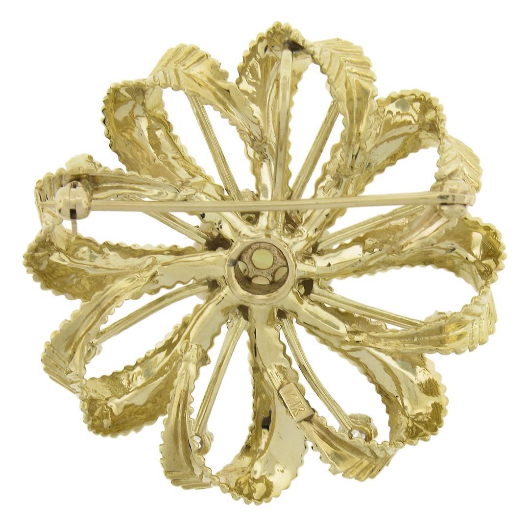 Vintage 14k Yellow Gold 0.28 ctw Diamond & Opal Textured Swirl Flower Pin Brooch
