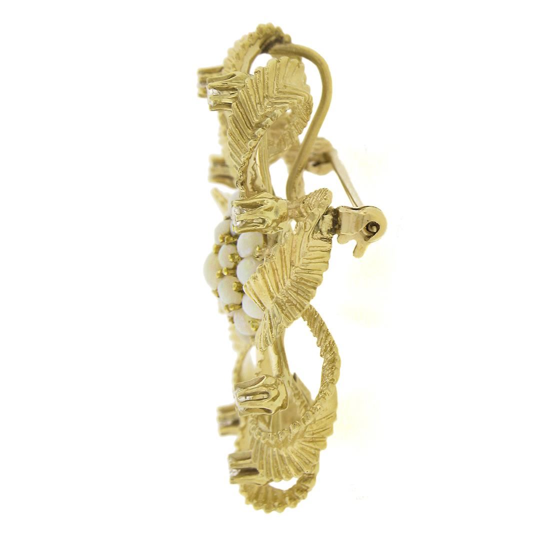 Vintage 14k Yellow Gold 0.28 ctw Diamond & Opal Textured Swirl Flower Pin Brooch