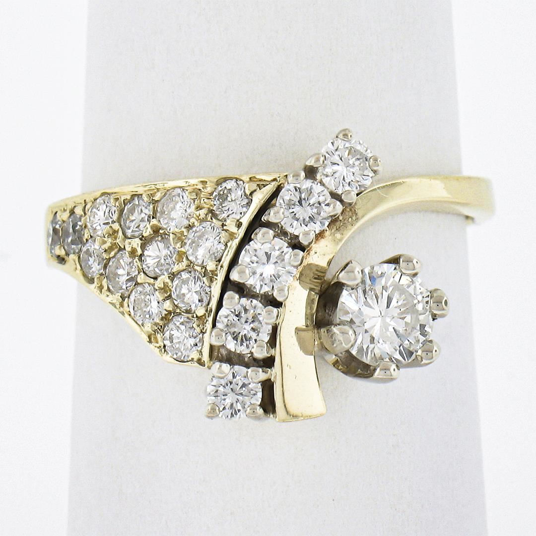 Vintage 14k Yellow Gold 0.90 ctw Prong & Pave Set Diamond Statement Cocktail Rin