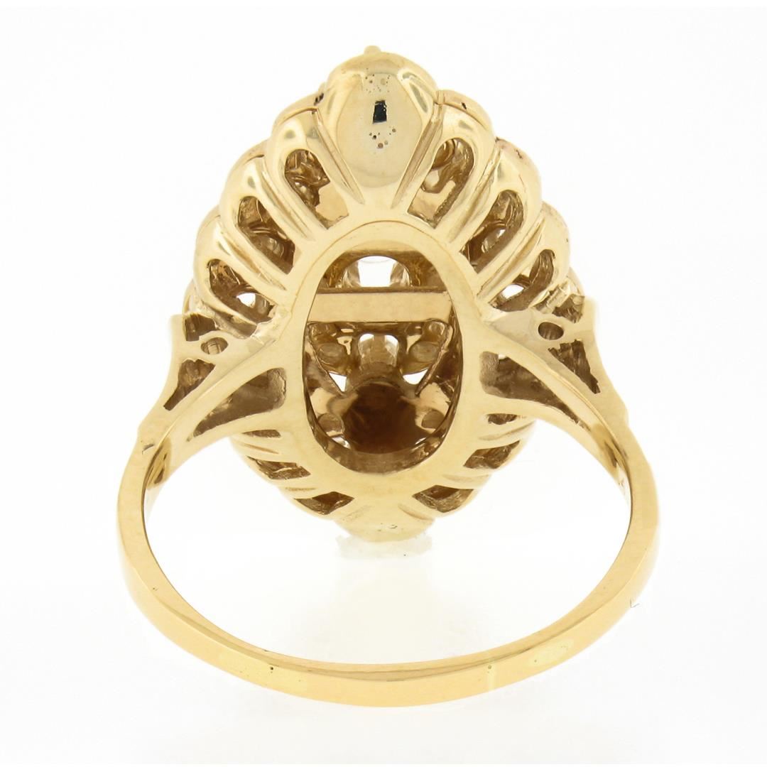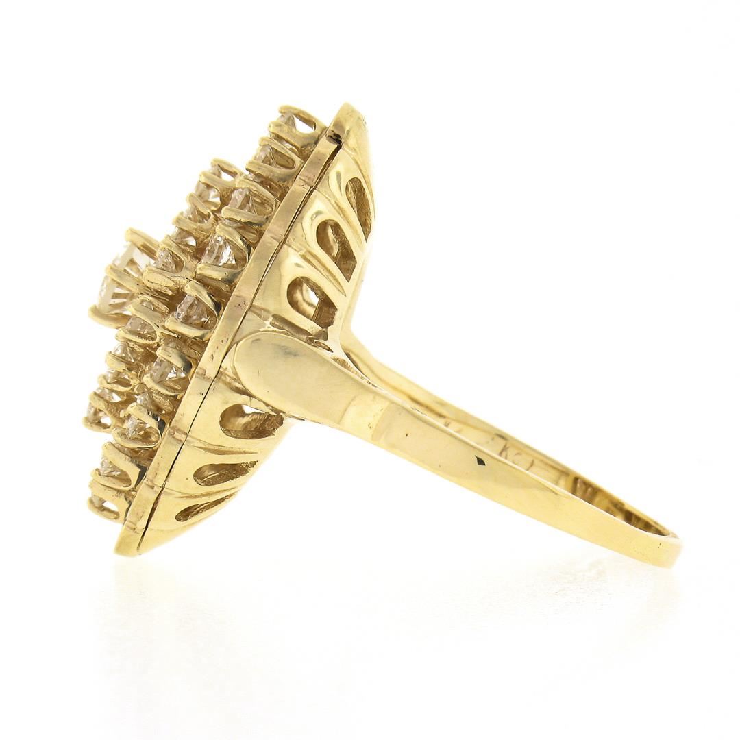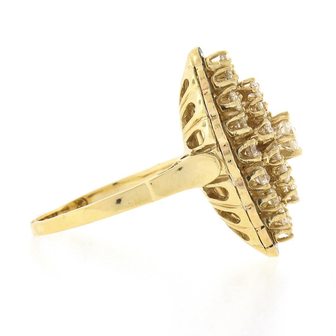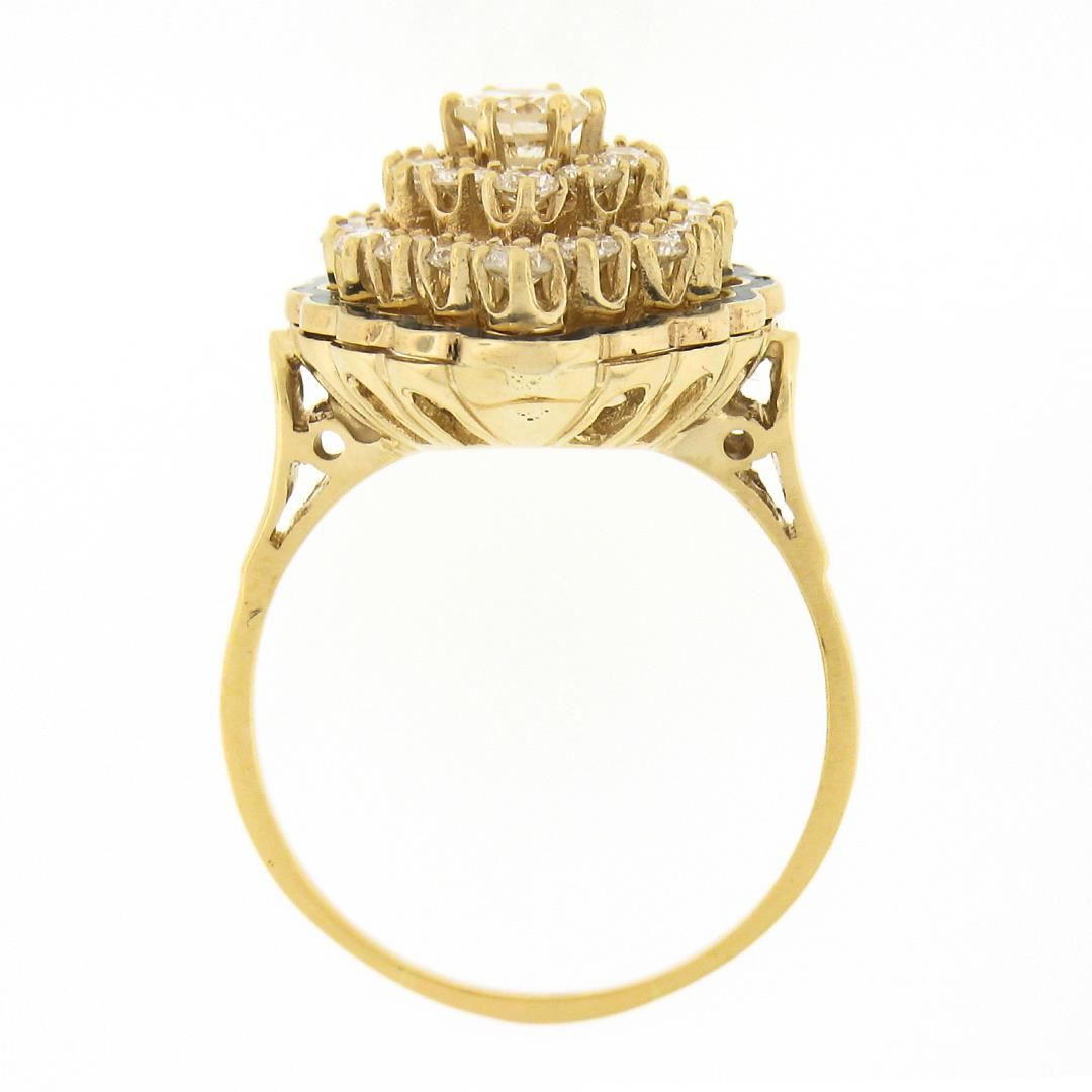 A vintage solid 14k yellow gold cocktail ring, with enamel work and 27 round brilliant cut natural diamonds (G/H - VS2/SI1 ; 1.12ctw). The ring is size 8.0, weighs a total of 7.04 grams, and measures 23.70mm wide.