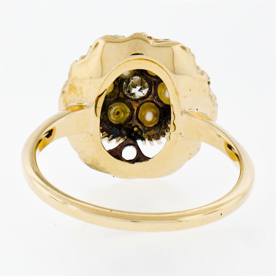 Vintage 14k Yellow Gold .21 ctw European Diamond & Pearl Cluster Open Tiered Rin