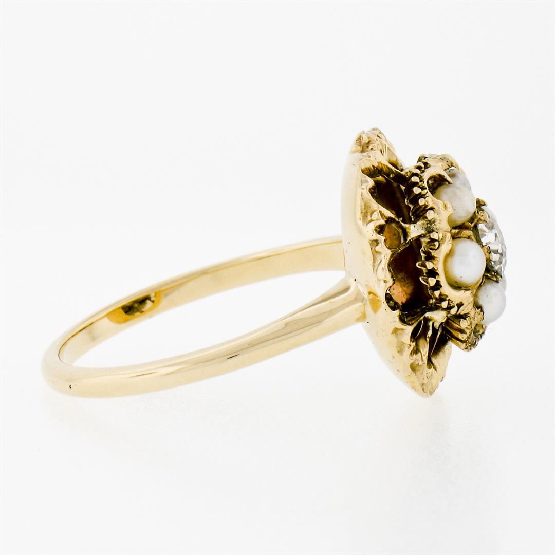 Vintage 14k Yellow Gold .21 ctw European Diamond & Pearl Cluster Open Tiered Rin