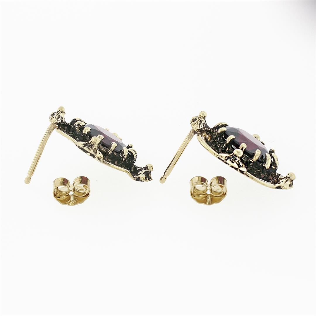 Vintage 14k Yellow Gold 3.20 ctw Oval Garnet Flower Open Work Frame Stud Earring