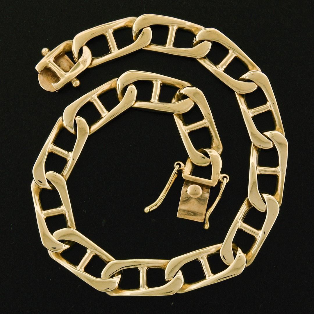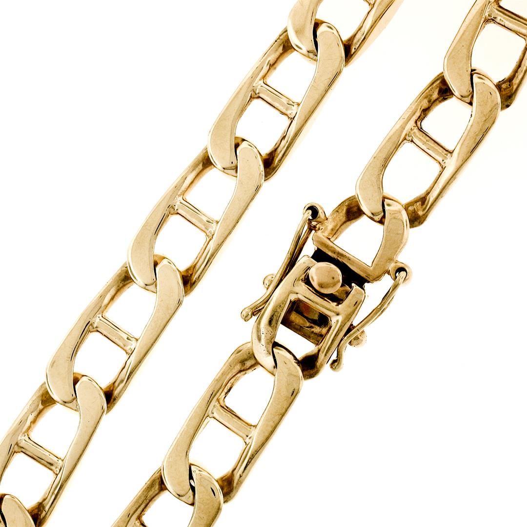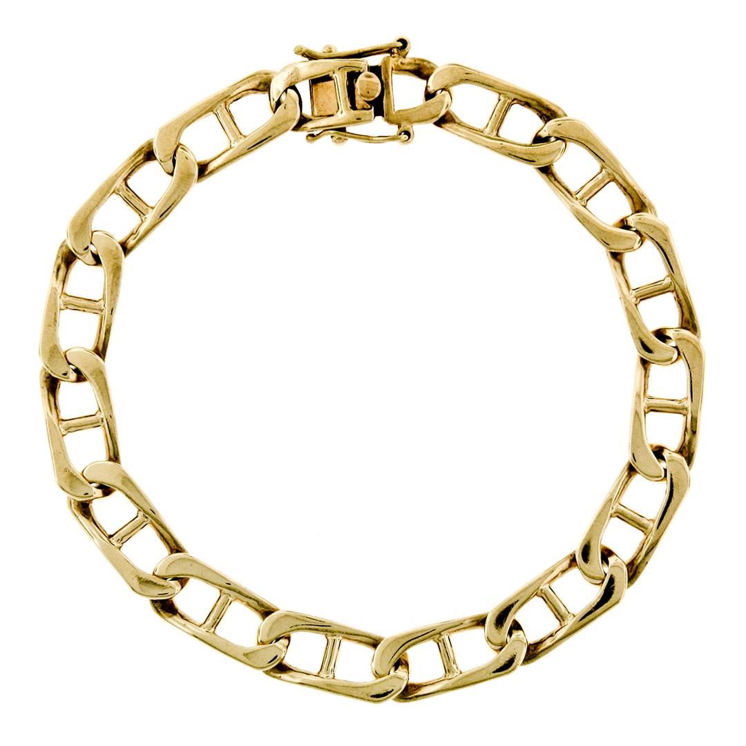 A vintage men's 14k yellow gold chain bracelet with large 8.4mm Gucci links. It weighs a total of 32.94 grams, measures 8.4mm wide, and measures 8.75 inches in length.