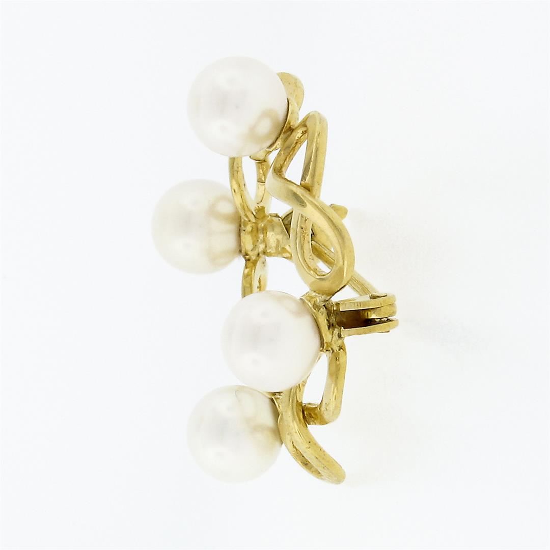 A vintage solid 14k yellow gold wreath infinity pin brooch, with 4 round shape cultured pearls (5.9mm each). Measures 25.90x25.30mm and weighs a total of 3.60 grams.