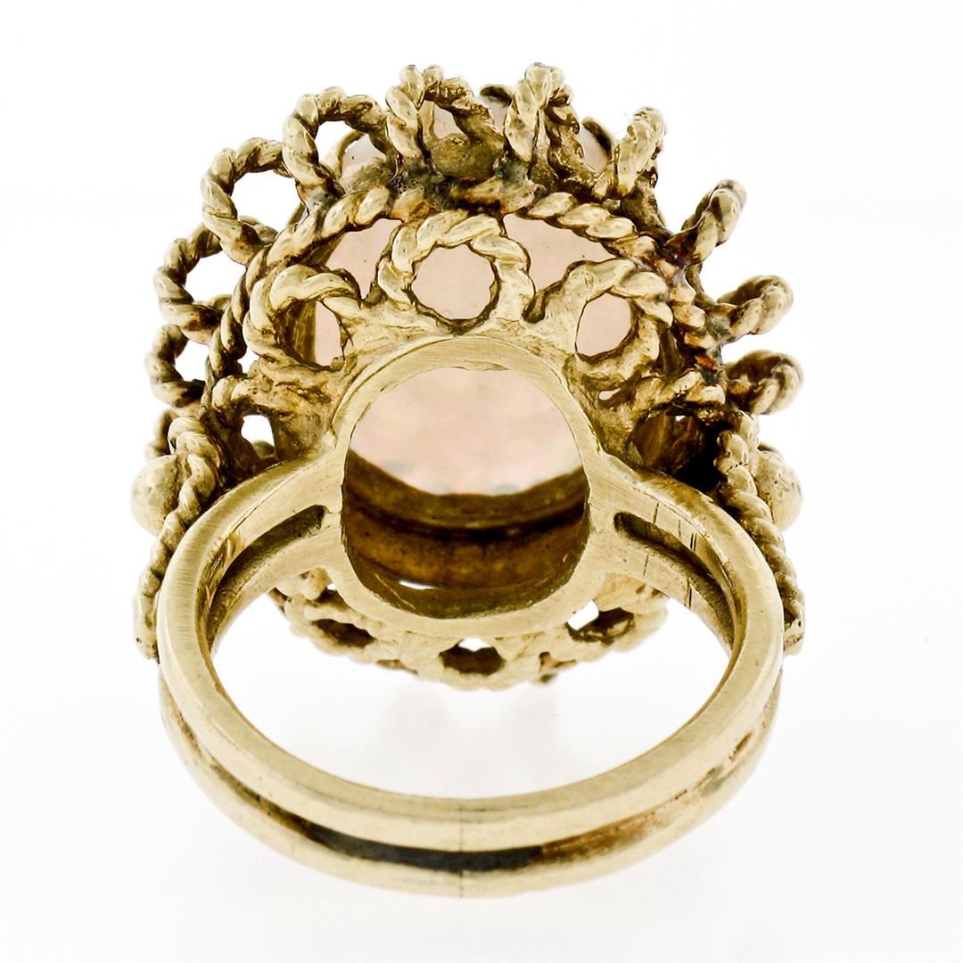 A vintage solid 14k yellow gold ring, with 1 oval cabochon cut natural opal (16.0x12.0mm - 5.75ct ). The ring is size 5.0, weighs a total of 12.48 grams, and measures 25.0mm wide.
