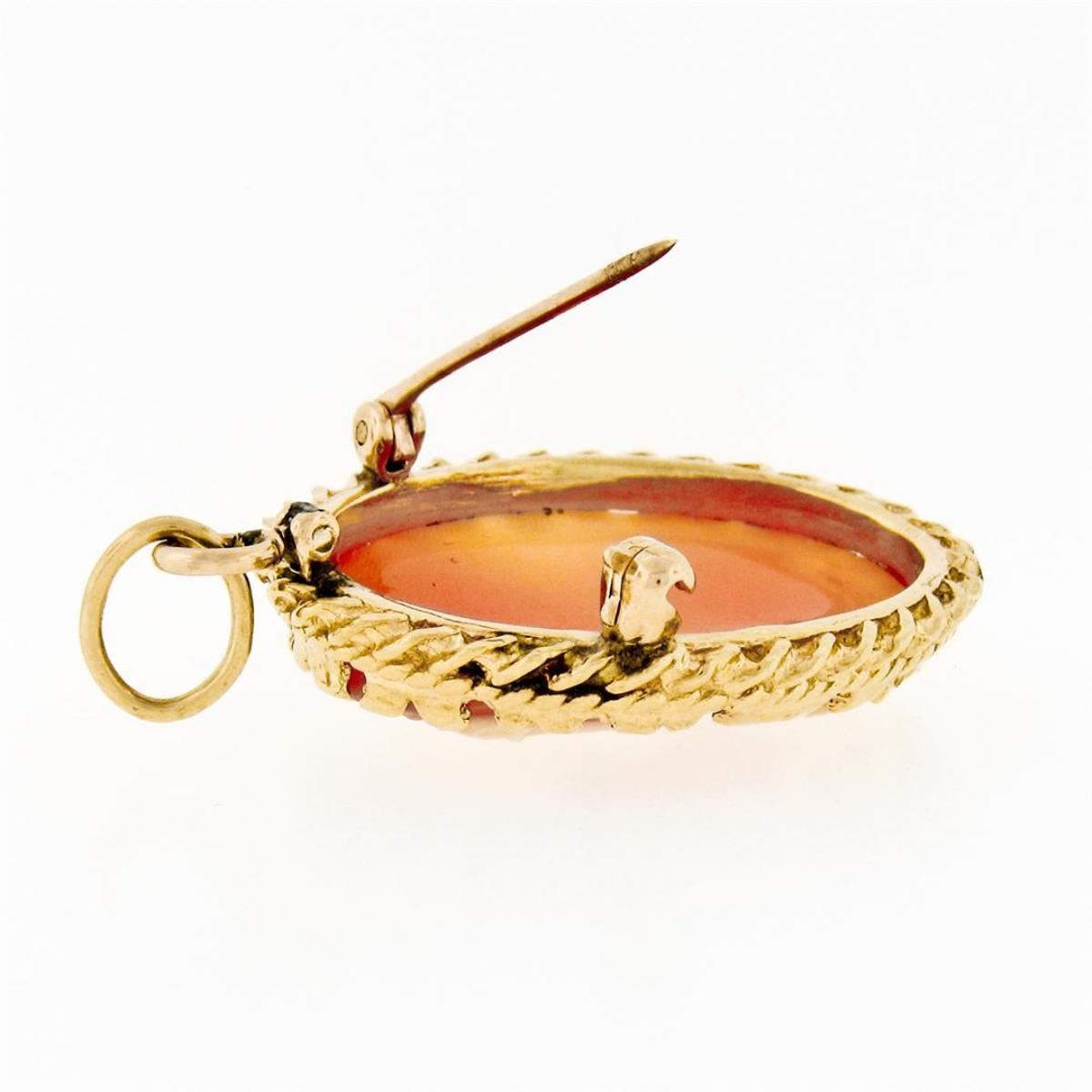 Vintage 14k Yellow Gold Carved Shell Cameo Dual Twisted Wire Brooch Pin Pendant