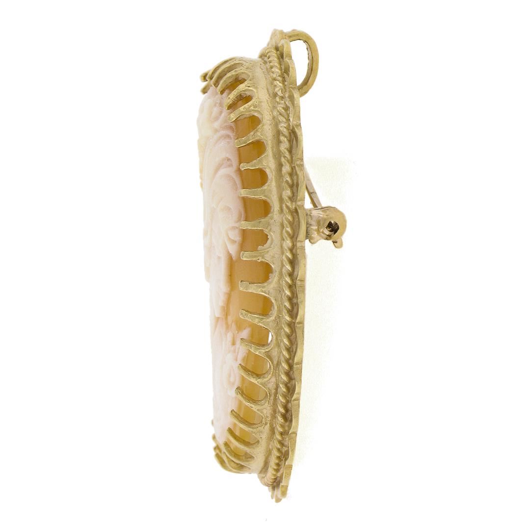 Vintage 14k Yellow Gold Carved Shell Cameo w/ Scalloped Frame Pin Brooch Pendant