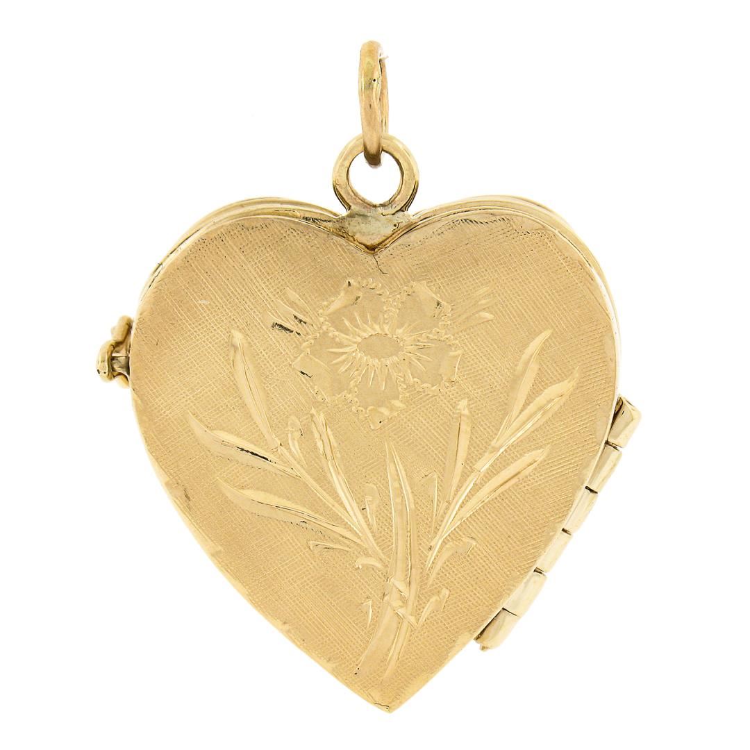 Vintage 14k Yellow Gold Hand Engraved Floral Work 4-Picture Heart Locket Pendant