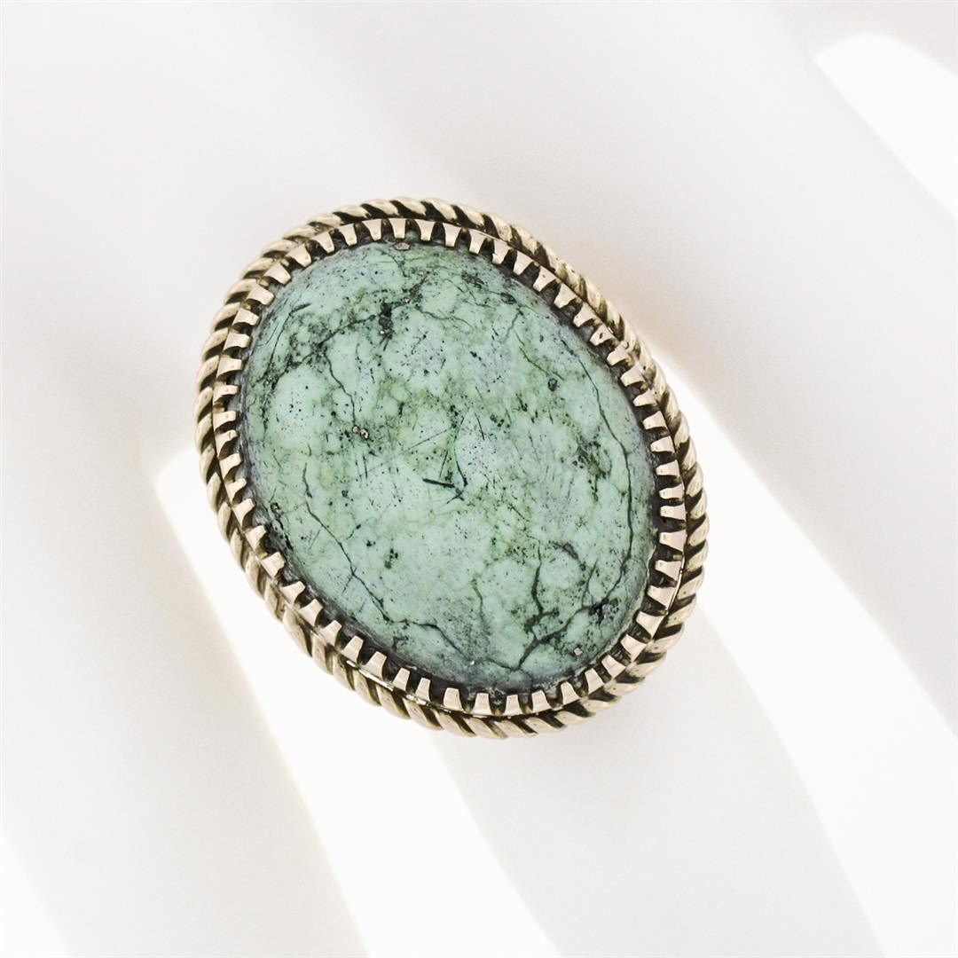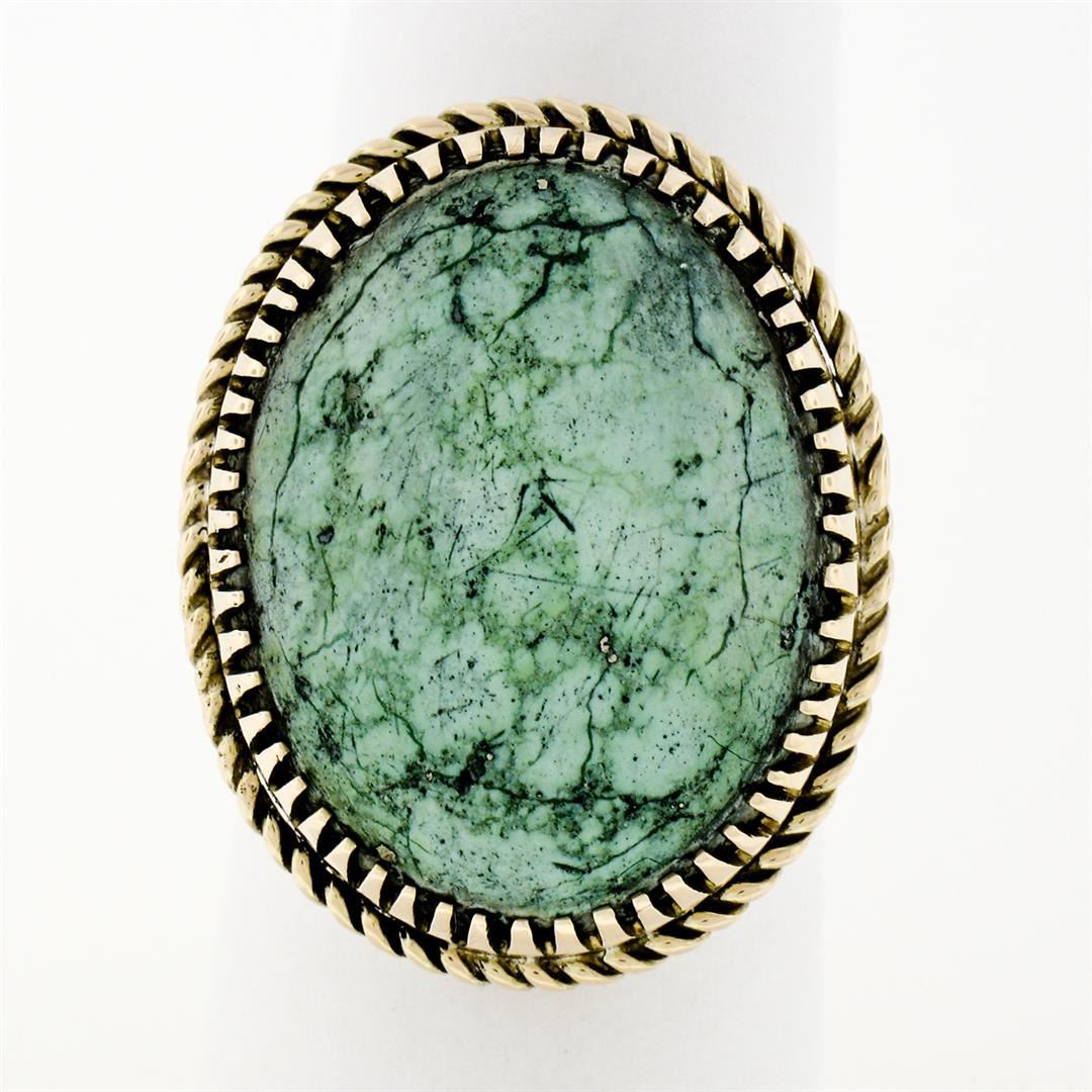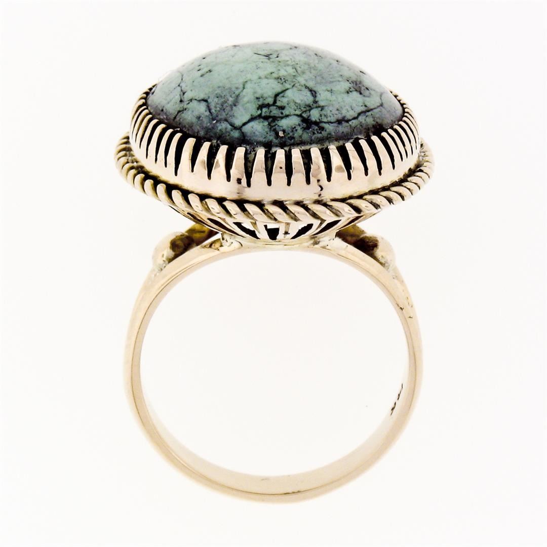 Vintage 14k Yellow Gold Large Oval Cabochon Turquoise Solitaire Cocktail Ring