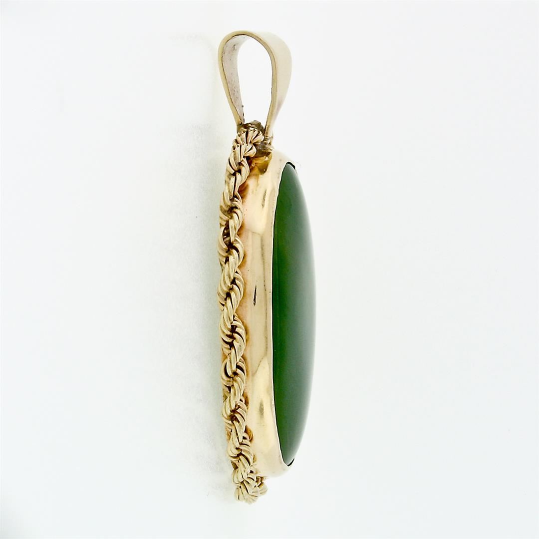 Vintage 14k Yellow Gold Oval Cabochon Cut Jade Twisted Rope Frame Charm Pendant