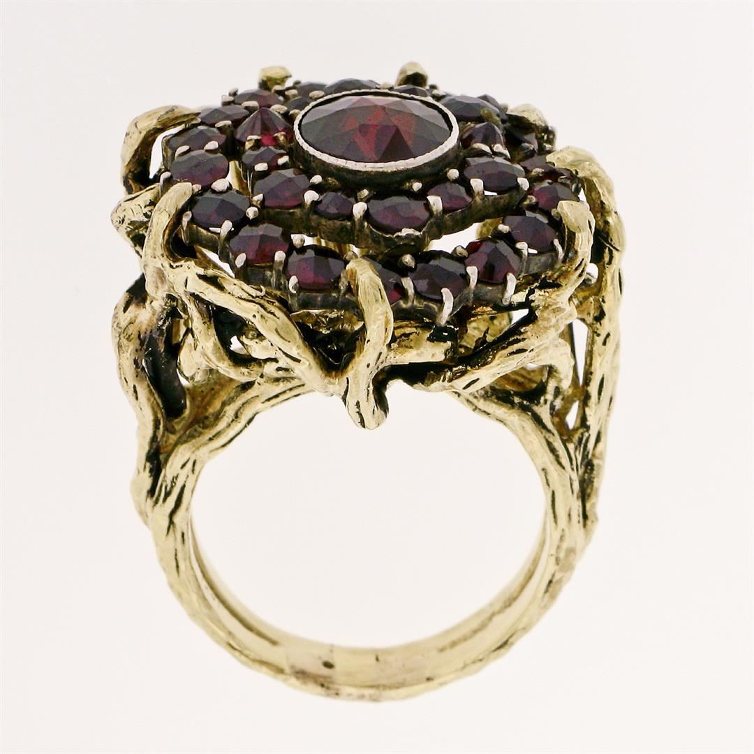 Vintage 14k Yellow Gold and Silver Top Old Cut Garnet Cluster Ring