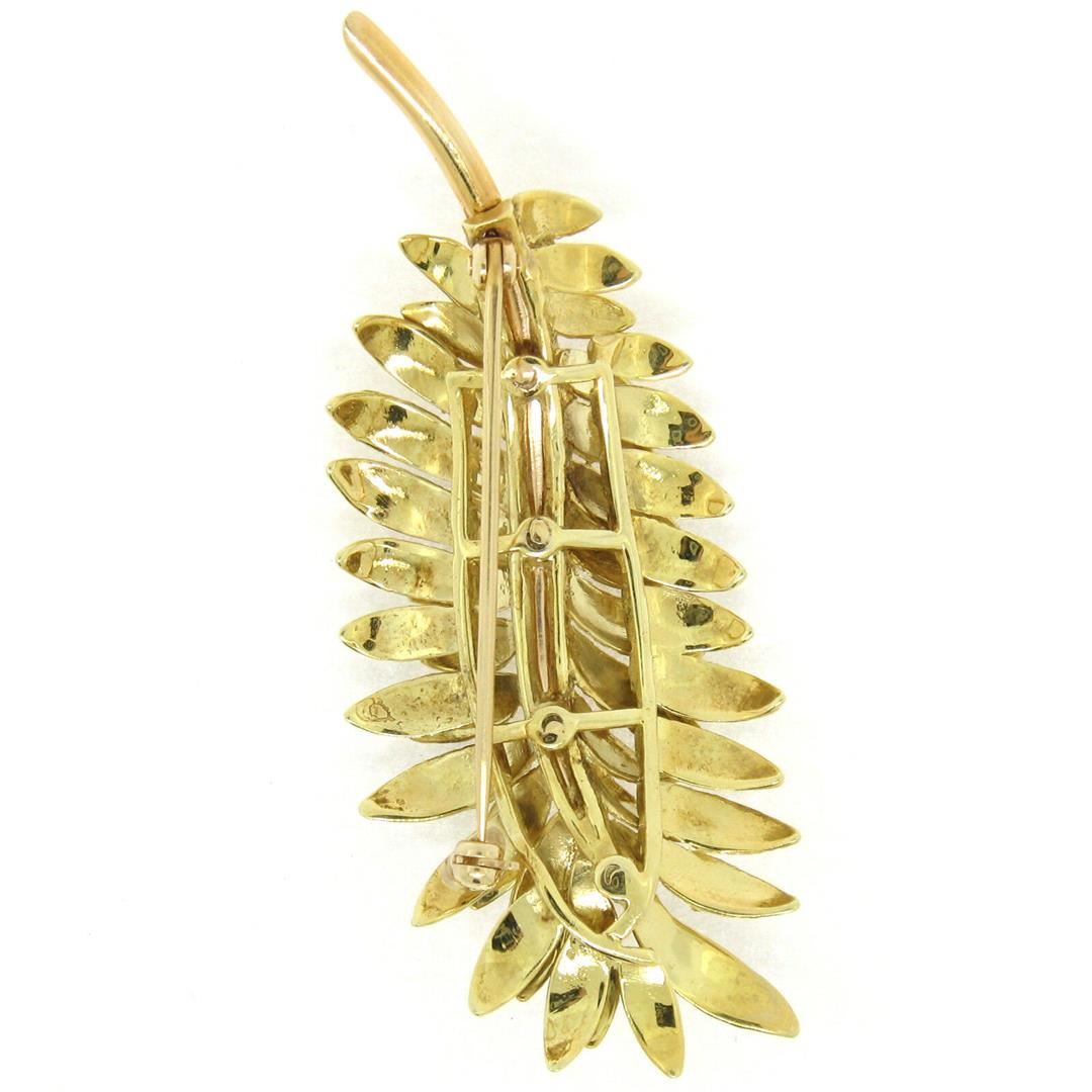 Vintage 14k Yellow and Rose Gold Multi Leaf Textured Branch Pin Brooch