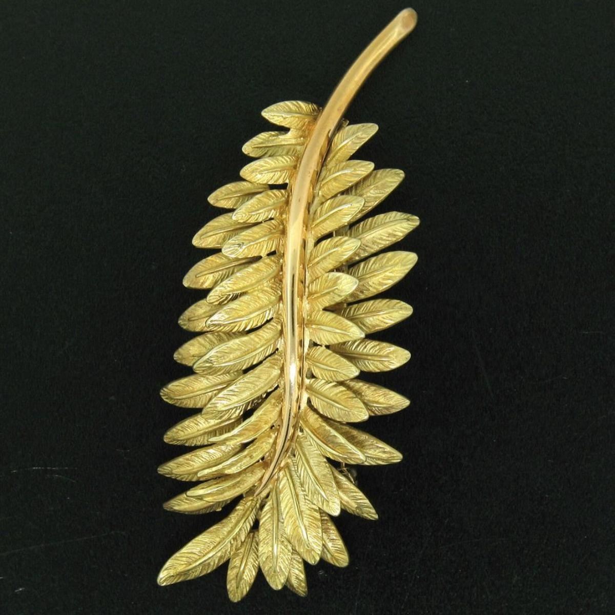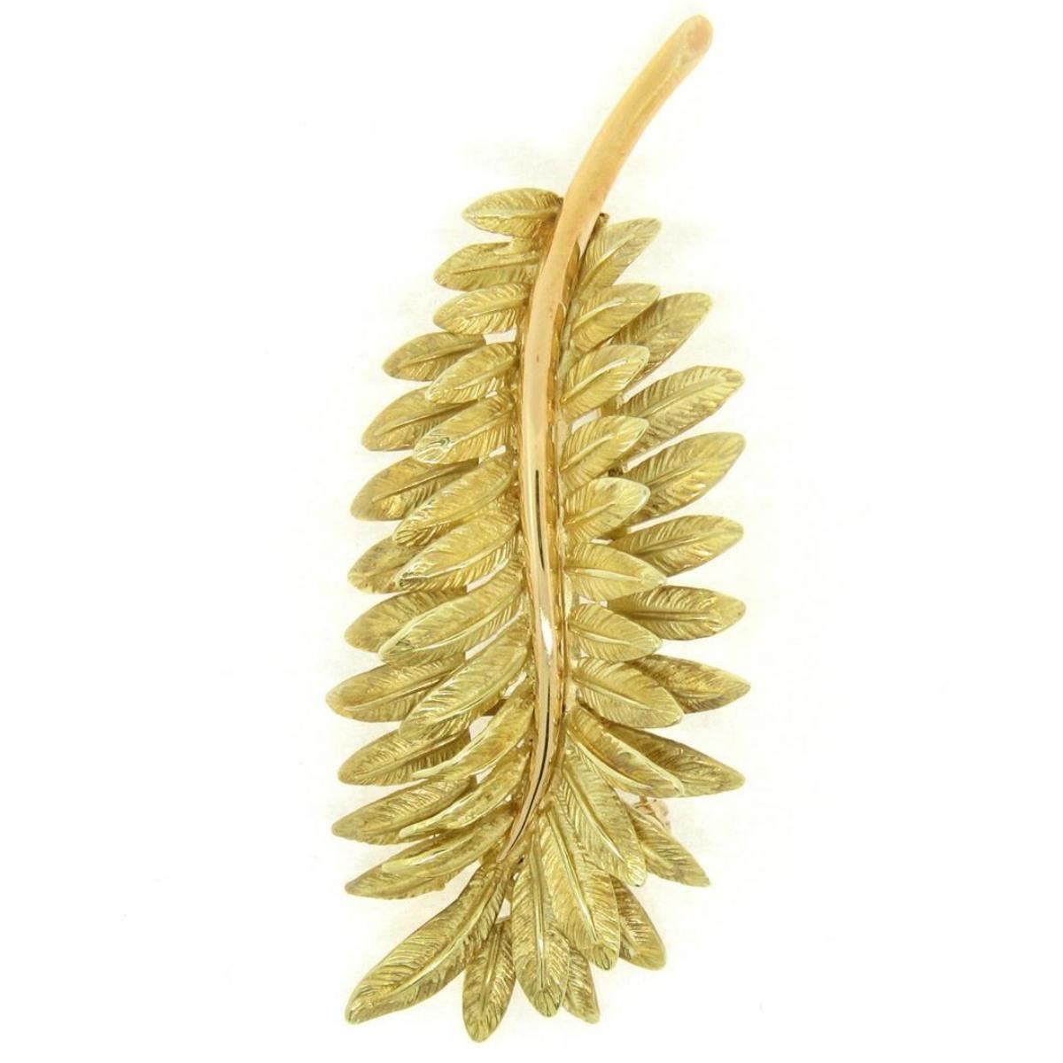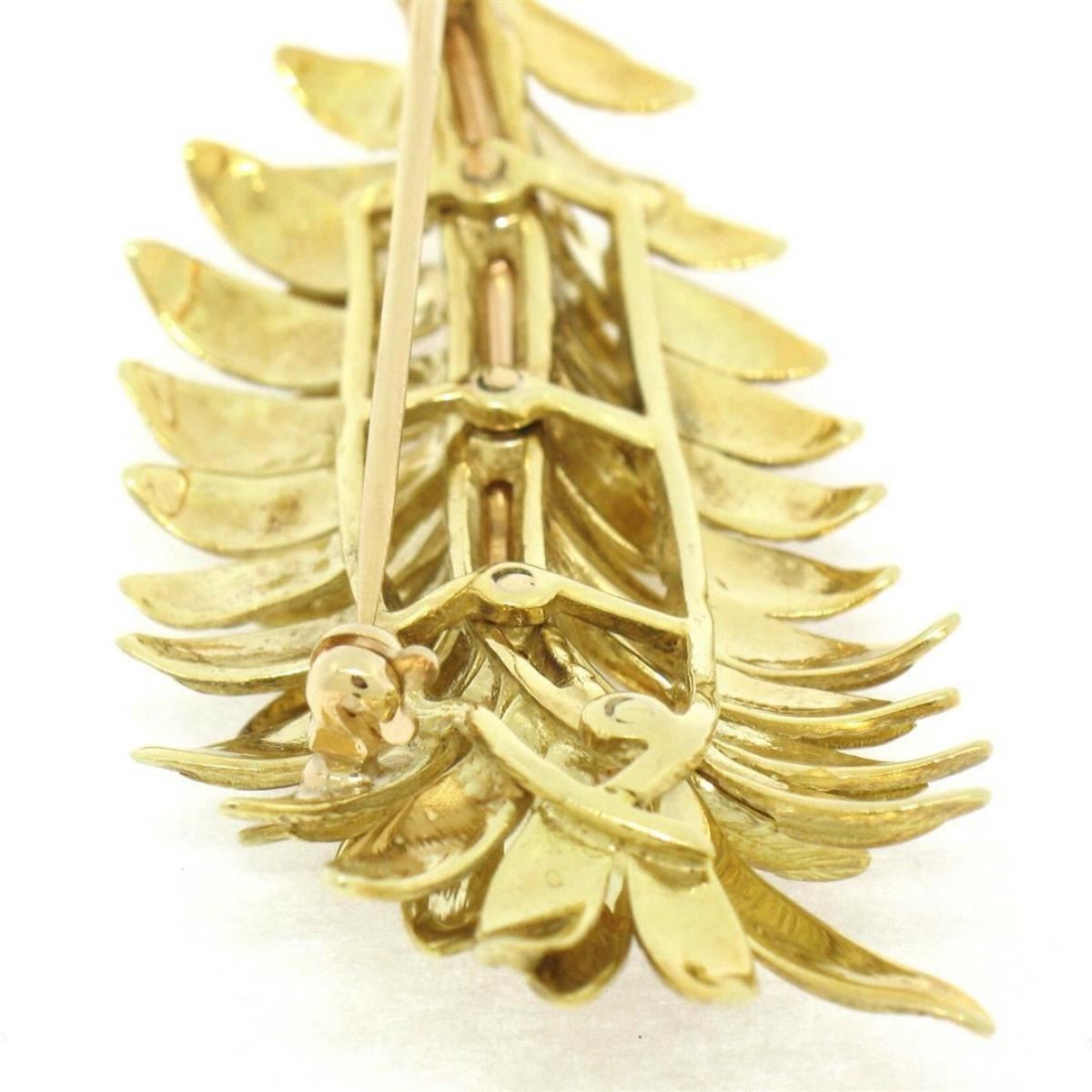 Vintage 14kt Yellow and Rose Gold Multi Leaf Textured Branch Pin Brooch