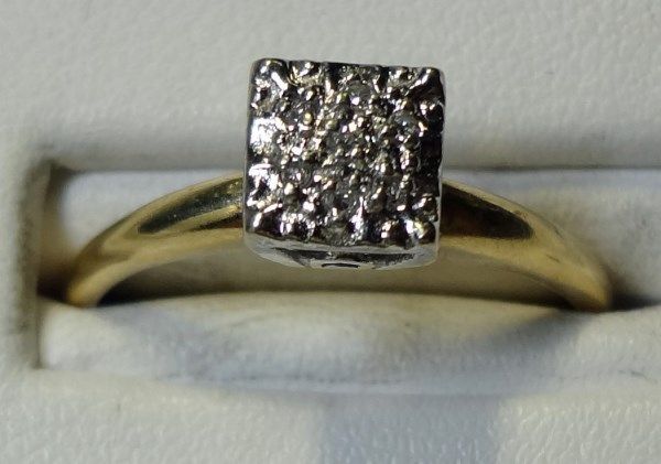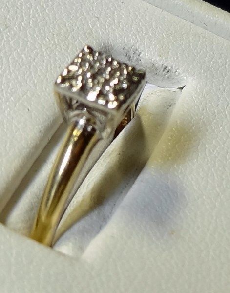 This is an illusion setting, little diamonds set in such a way as to look like much more! Nice vintage condition.