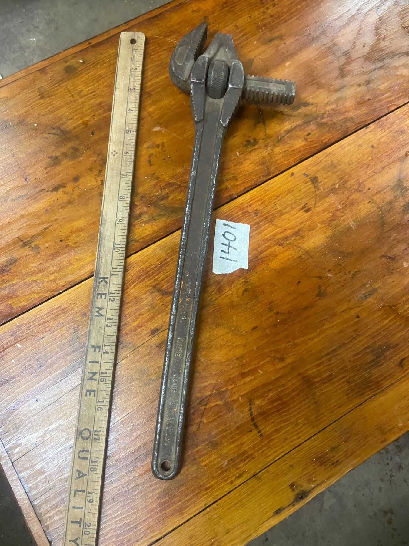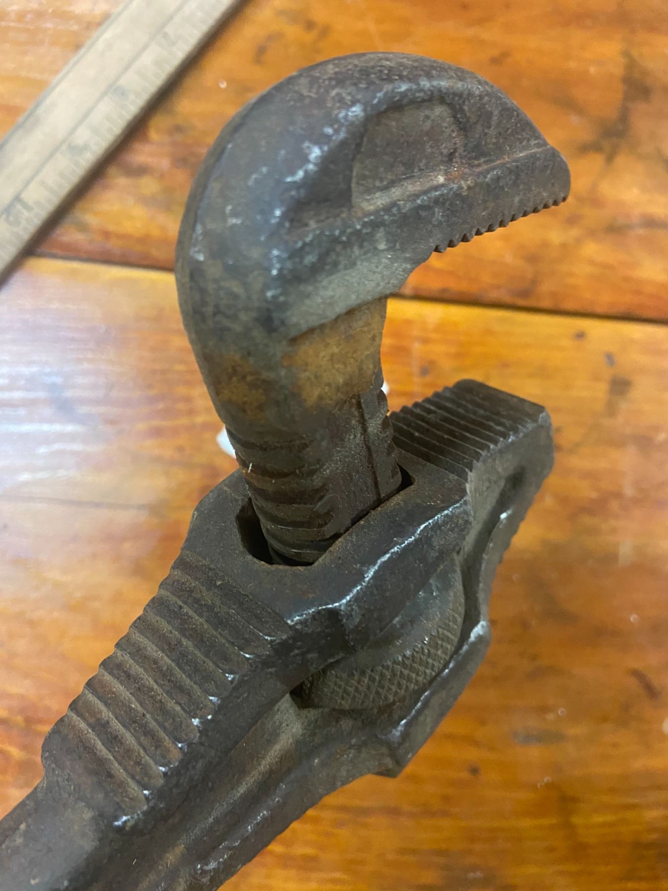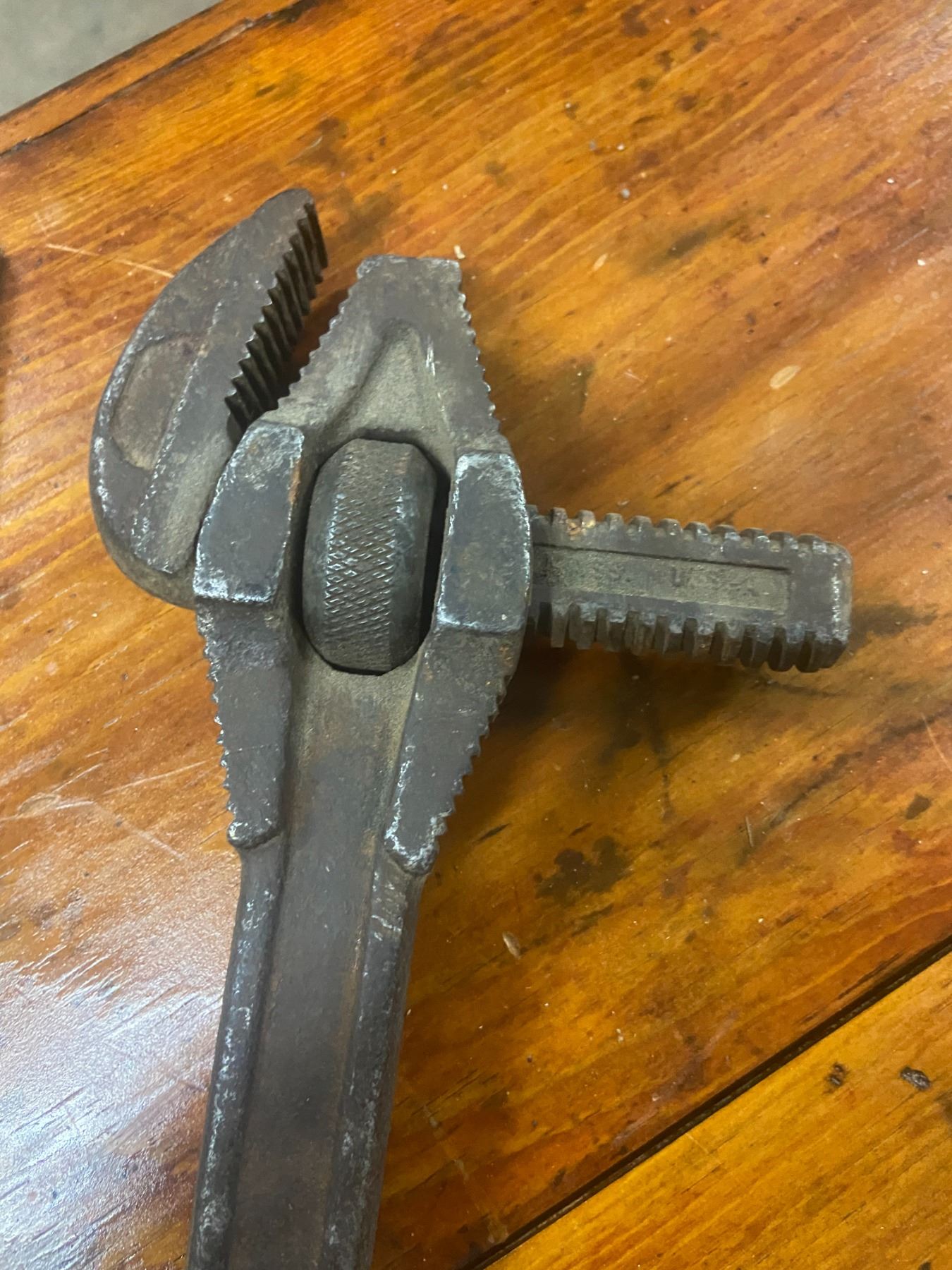 Vintage 18" Pipe Wrench - Green Field - Unique Design 10" x 7"