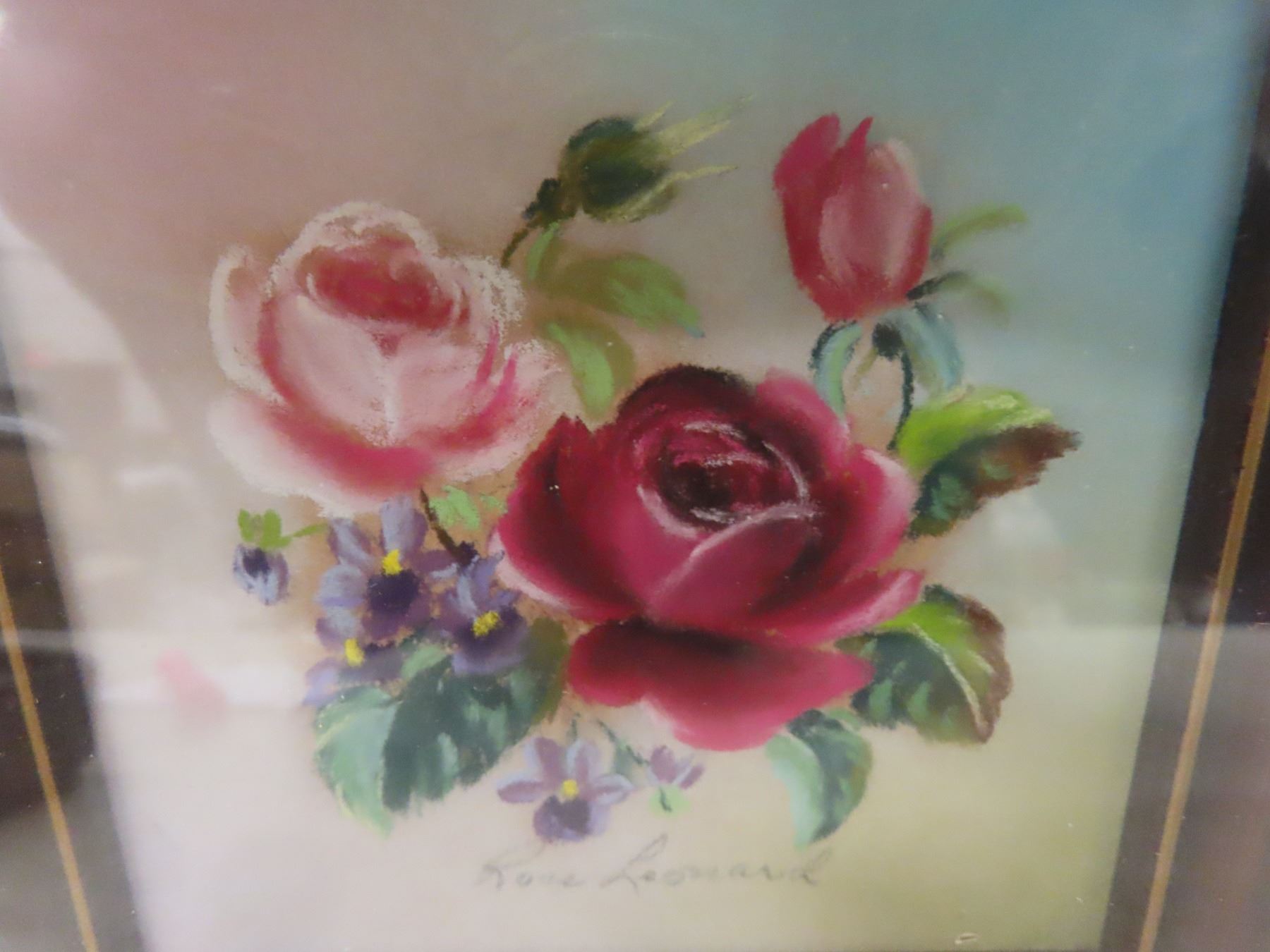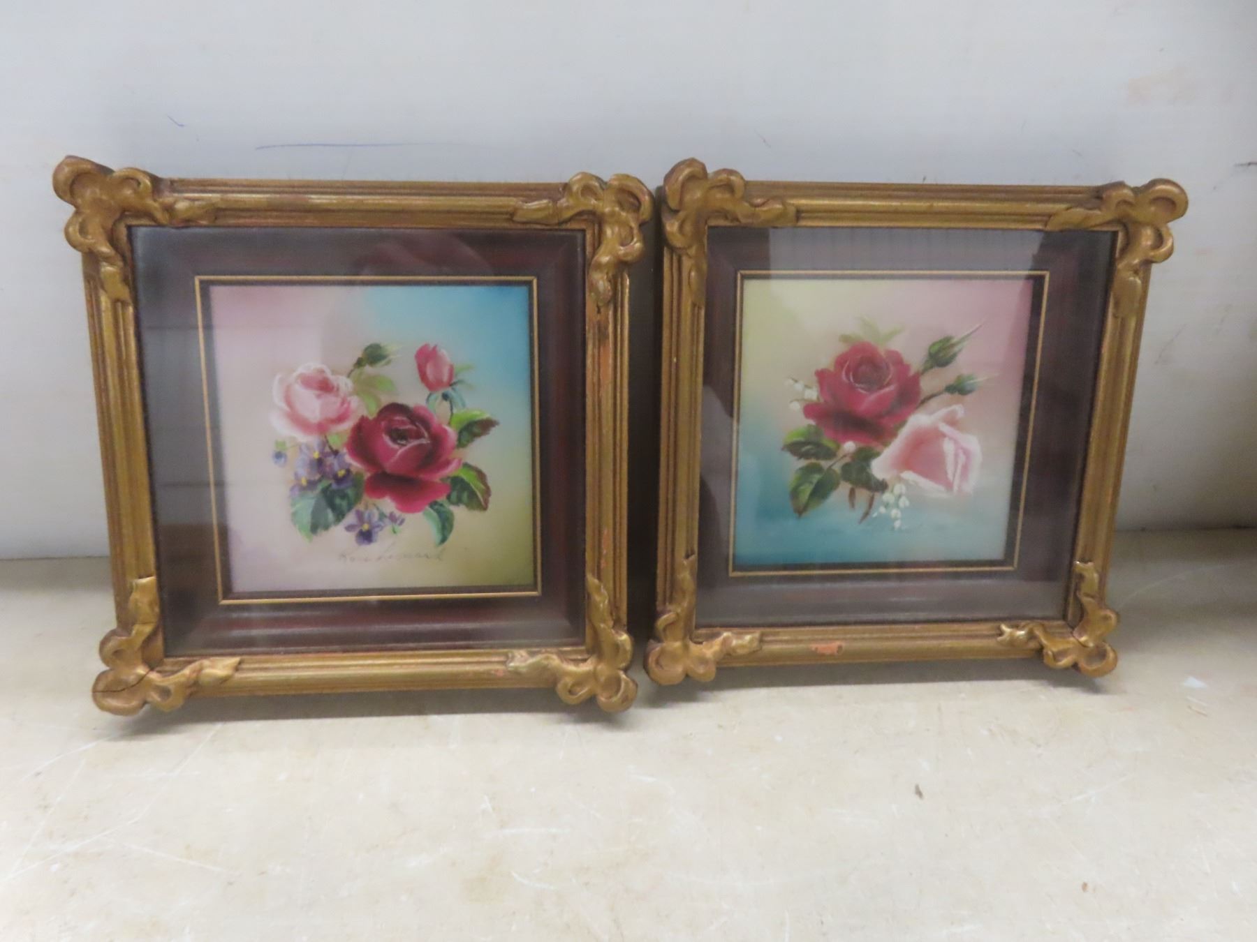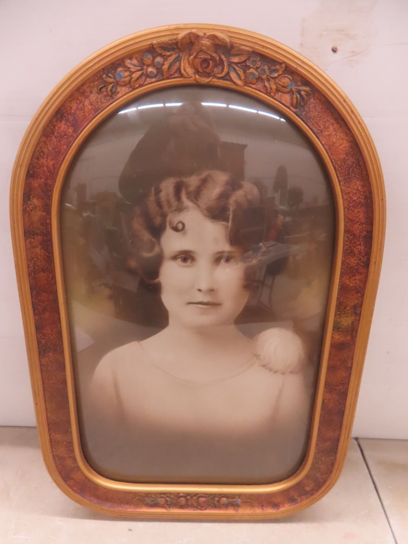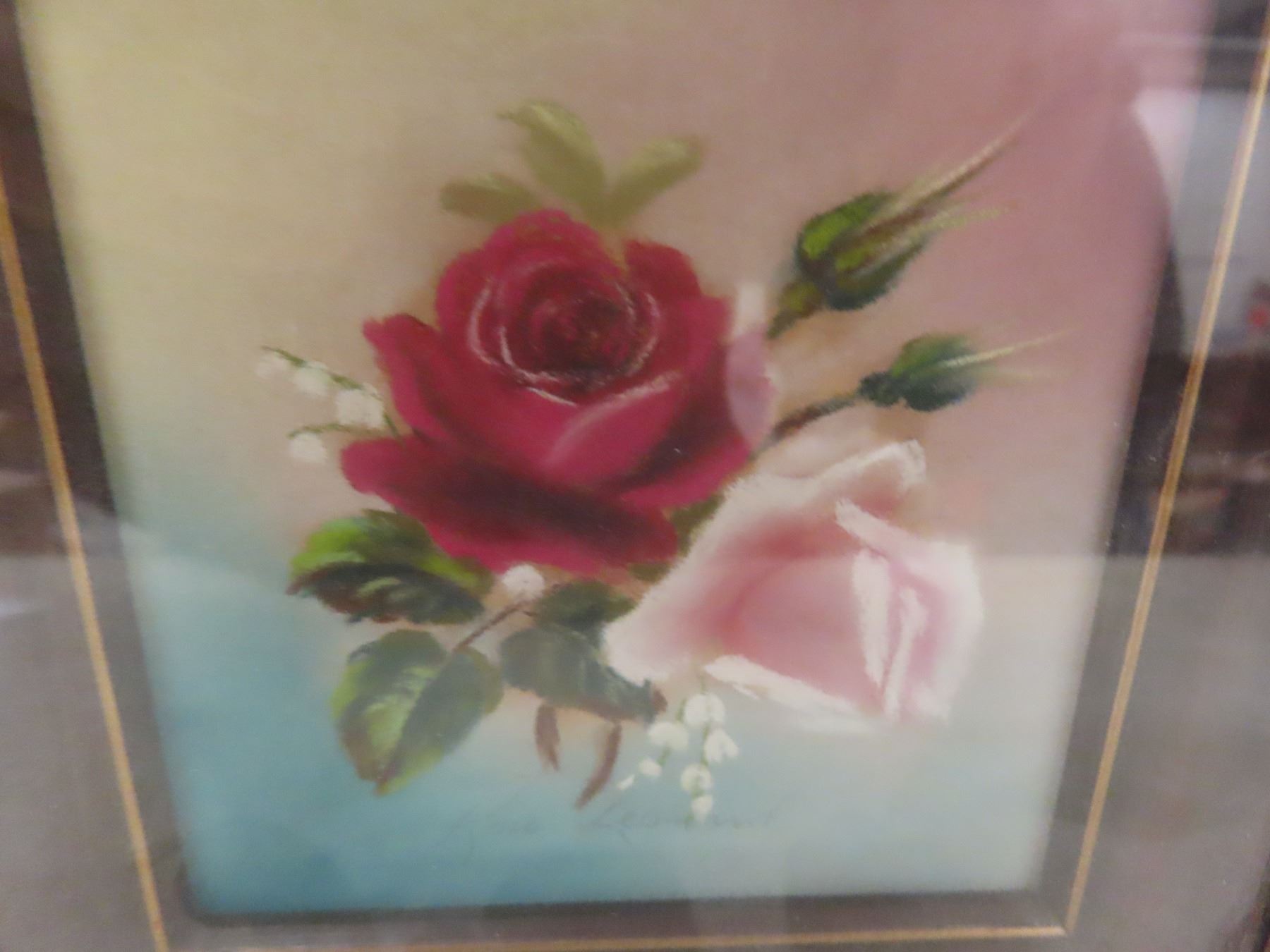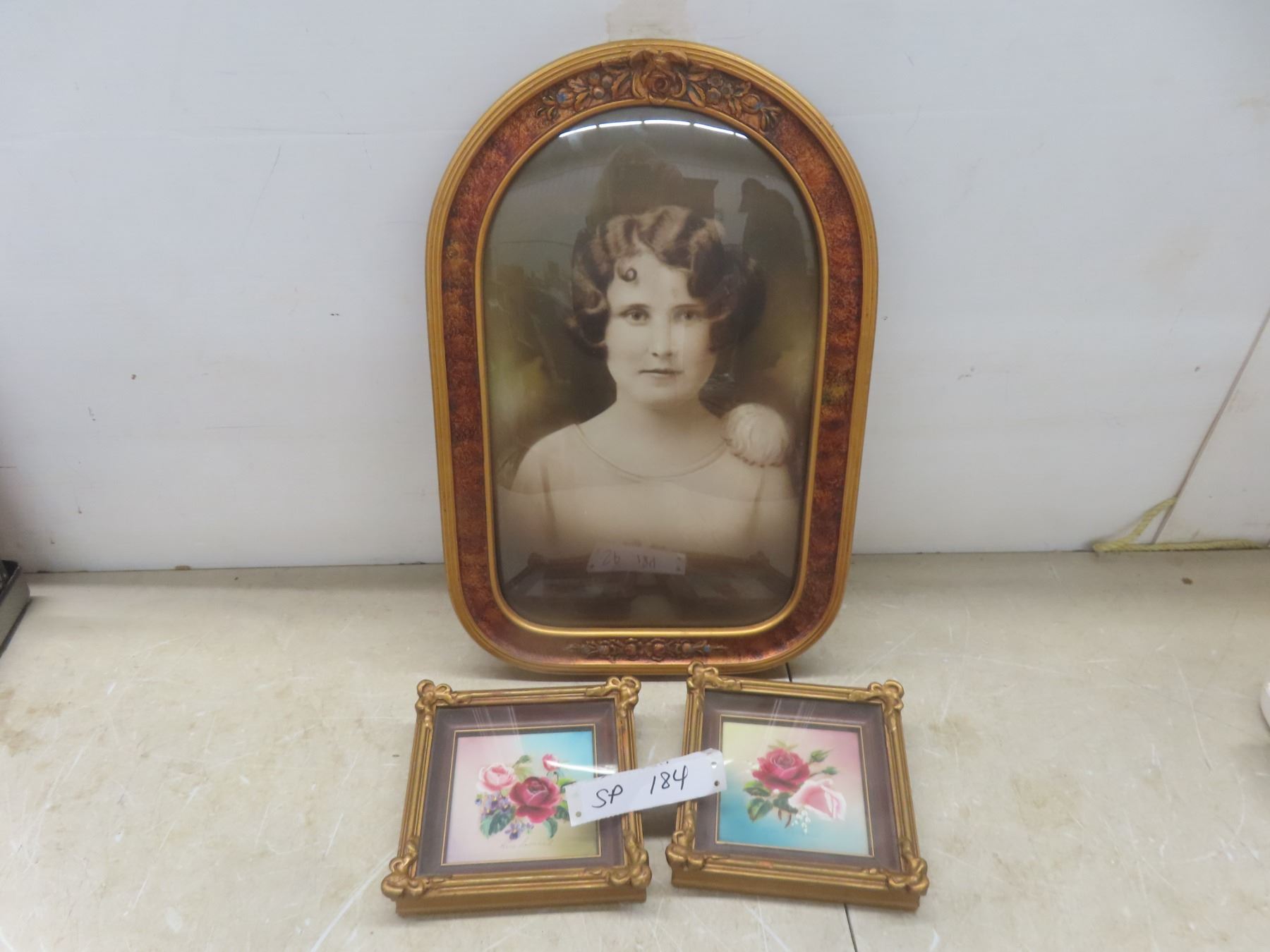 Vintage 18" x 12" Convex Picture Frame and Two 6" x 6" Flower Pictures
