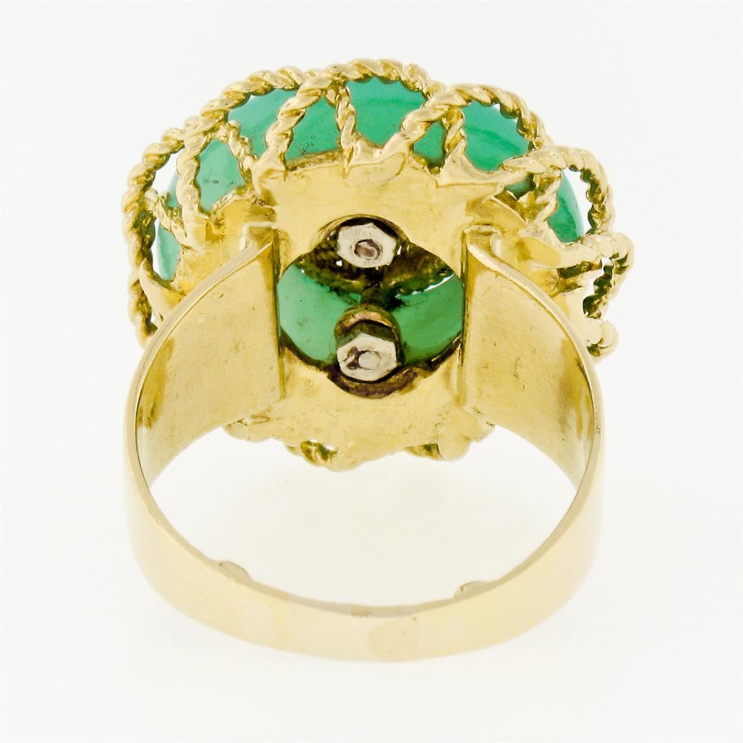 A vintage solid 18k yellow gold platter ring, with 1 circle cabochon shape natural jade (18.3mm). The ring is size 8.0, weighs a total of 11.32 grams, and measures 22.5mm in diameter.