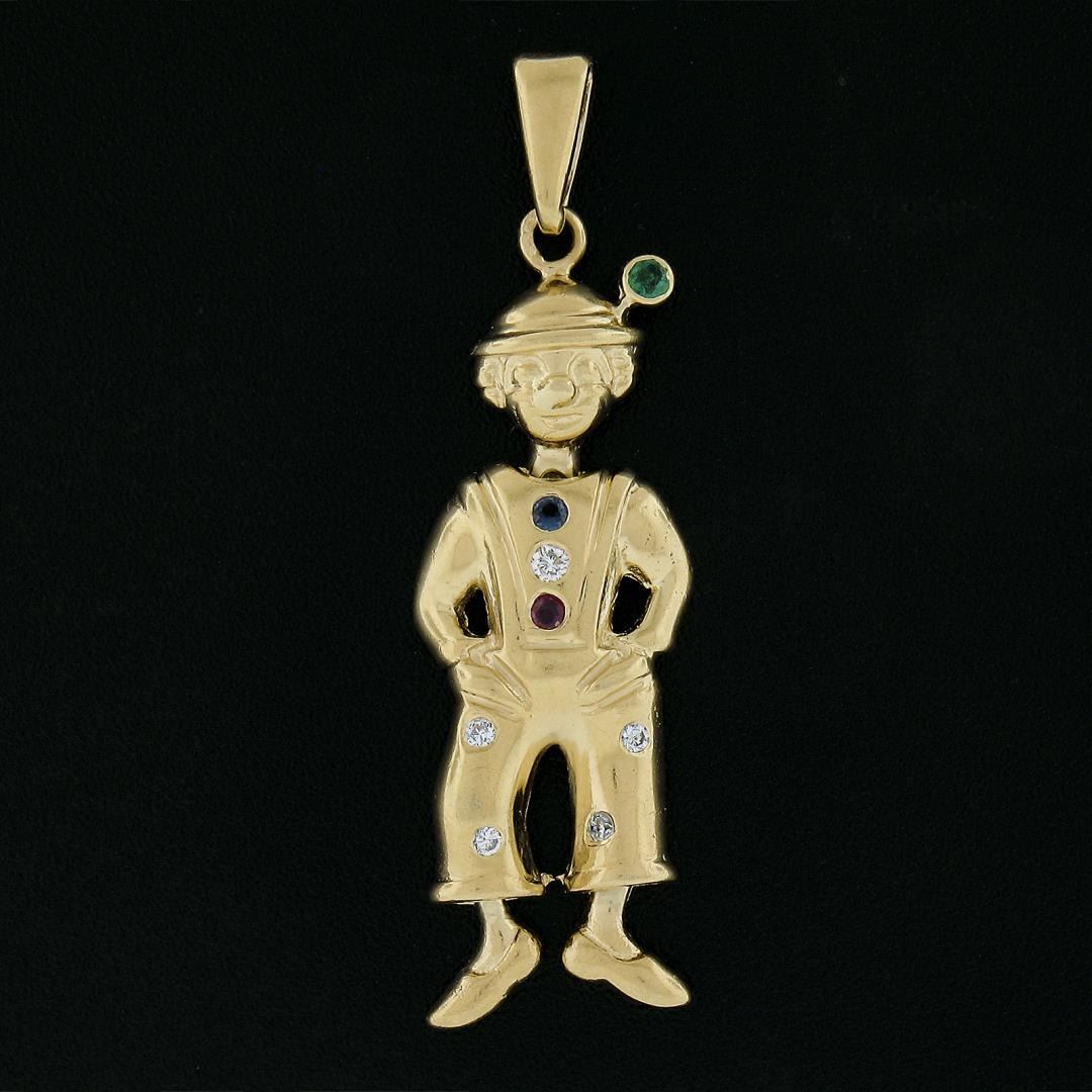 Vintage 18K Gold Emerald Sapphire Ruby & Diamond Moveable Clown Charm Pendant