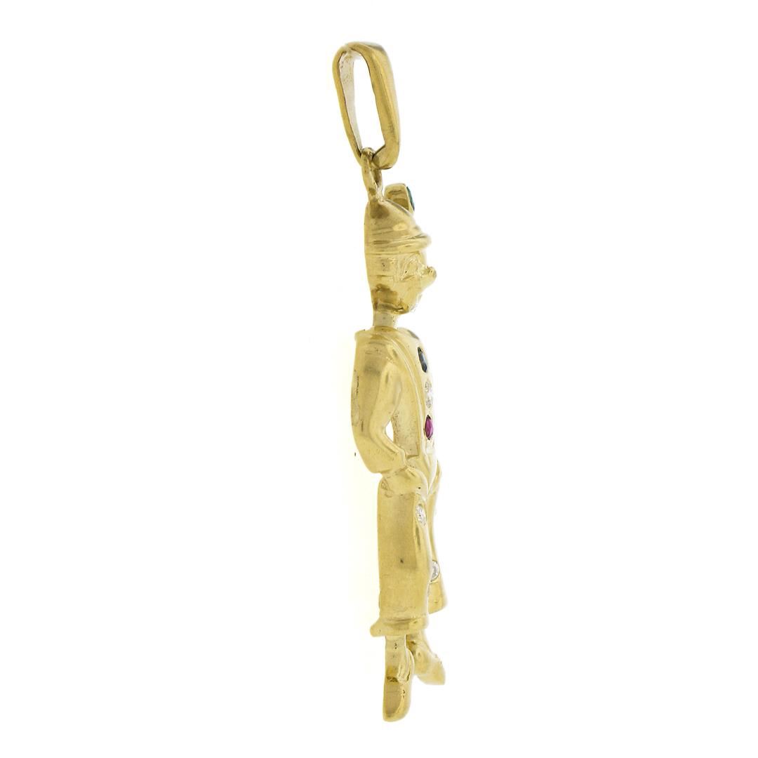 Vintage 18K Gold Emerald Sapphire Ruby & Diamond Moveable Clown Charm Pendant