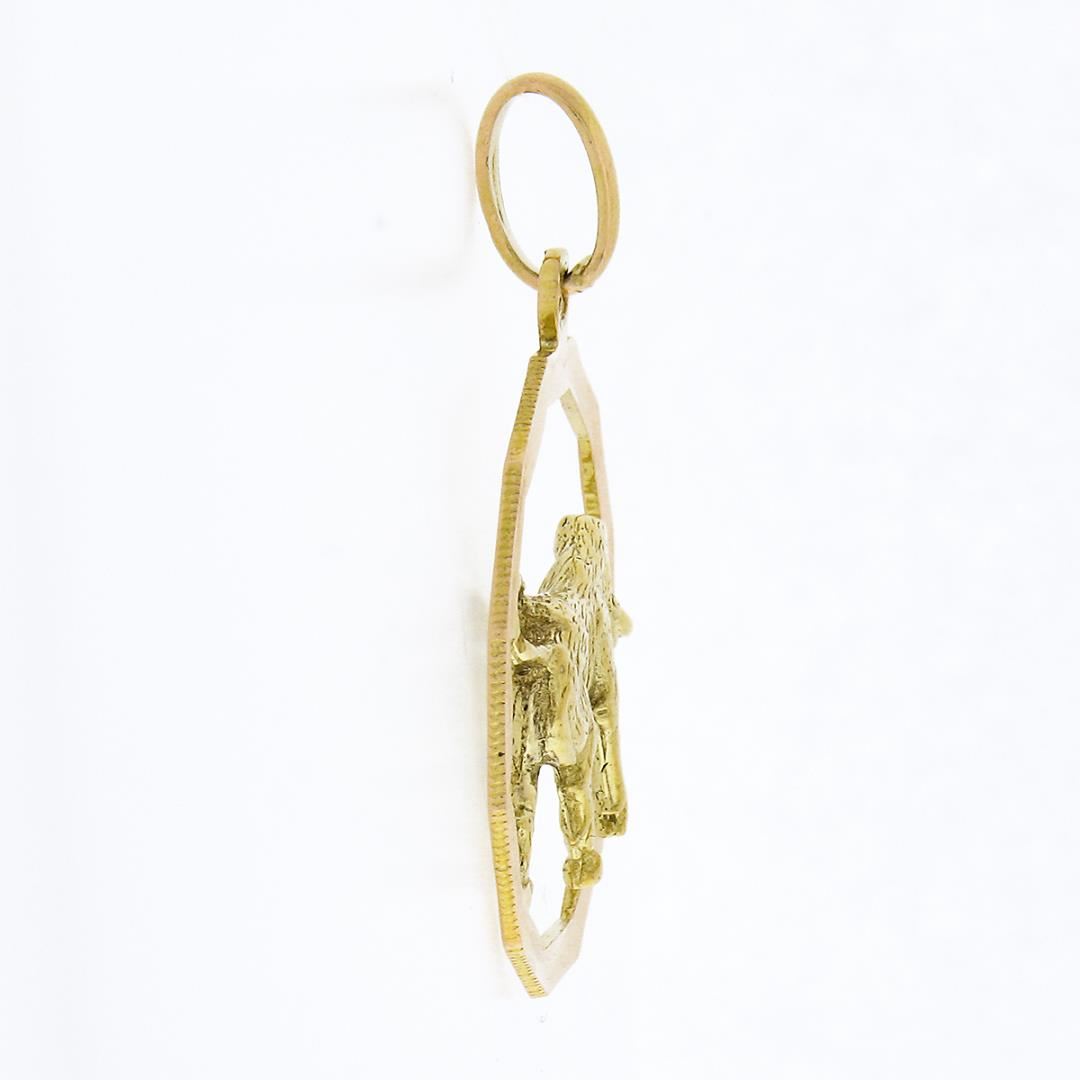 A vintage solid 18k yellow & white gold taurus charm pendant. The pendant weighs a total of 6.02 grams, measures 38.30x27.20mm including the bail, and the inside of the bail measures 4.20x7.70mm.