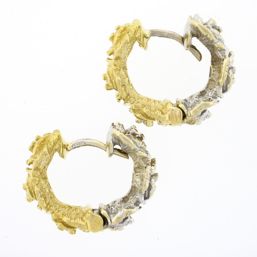 A vintage solid 18k yellow & white gold floral earrings, with 12 round brilliant cut natural diamonds (G/H - VS1/VS2 ; 0.30ctw ). The earrings measure approximately 15.1x7.5mm and weigh a total of 12.11 grams.
