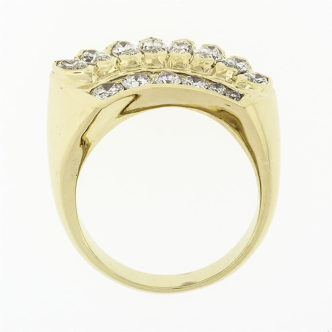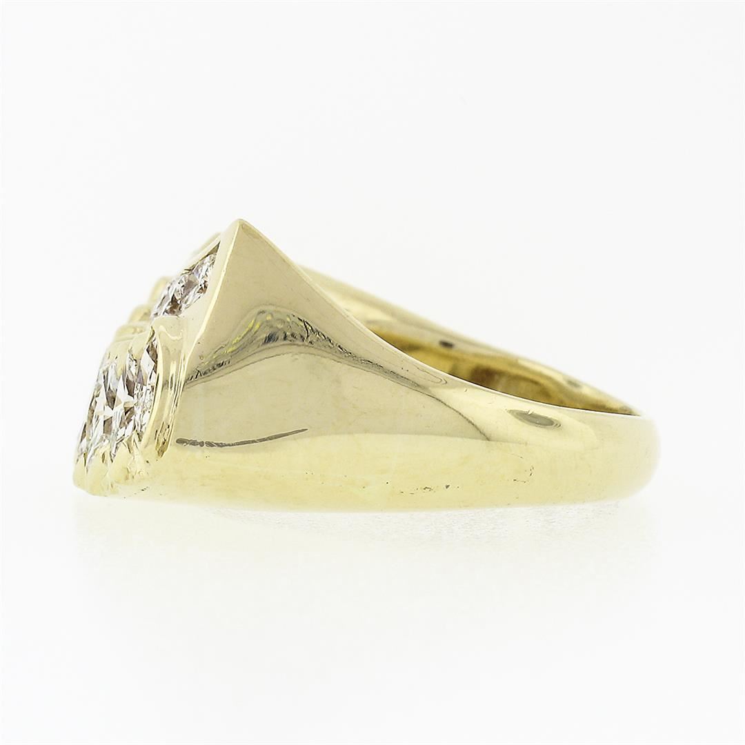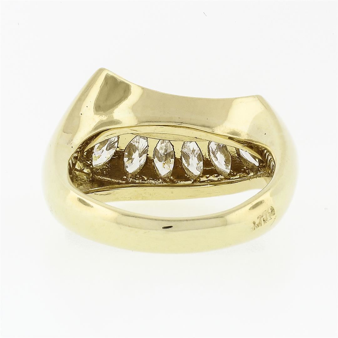 A vintage solid 18k yellow gold ring, with 8 marquise cut natural diamonds (H/I- VS1/VS2; 1.10ctw), & 6 round brilliant cut natural diamonds (G/H- VS1/VS2; 0.30ctw). The ring is size 5.5, weighs a total of 7.50 grams, and measures 10mm wide.