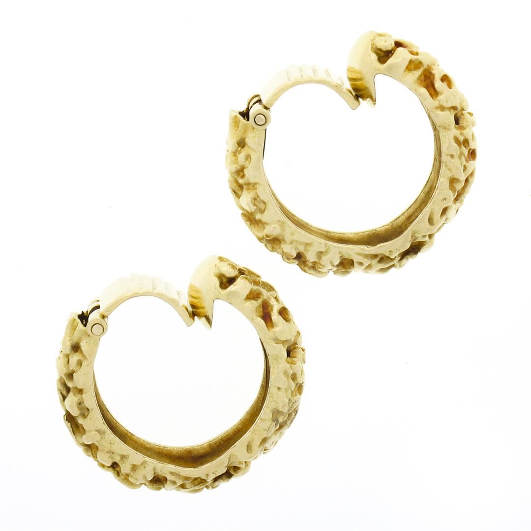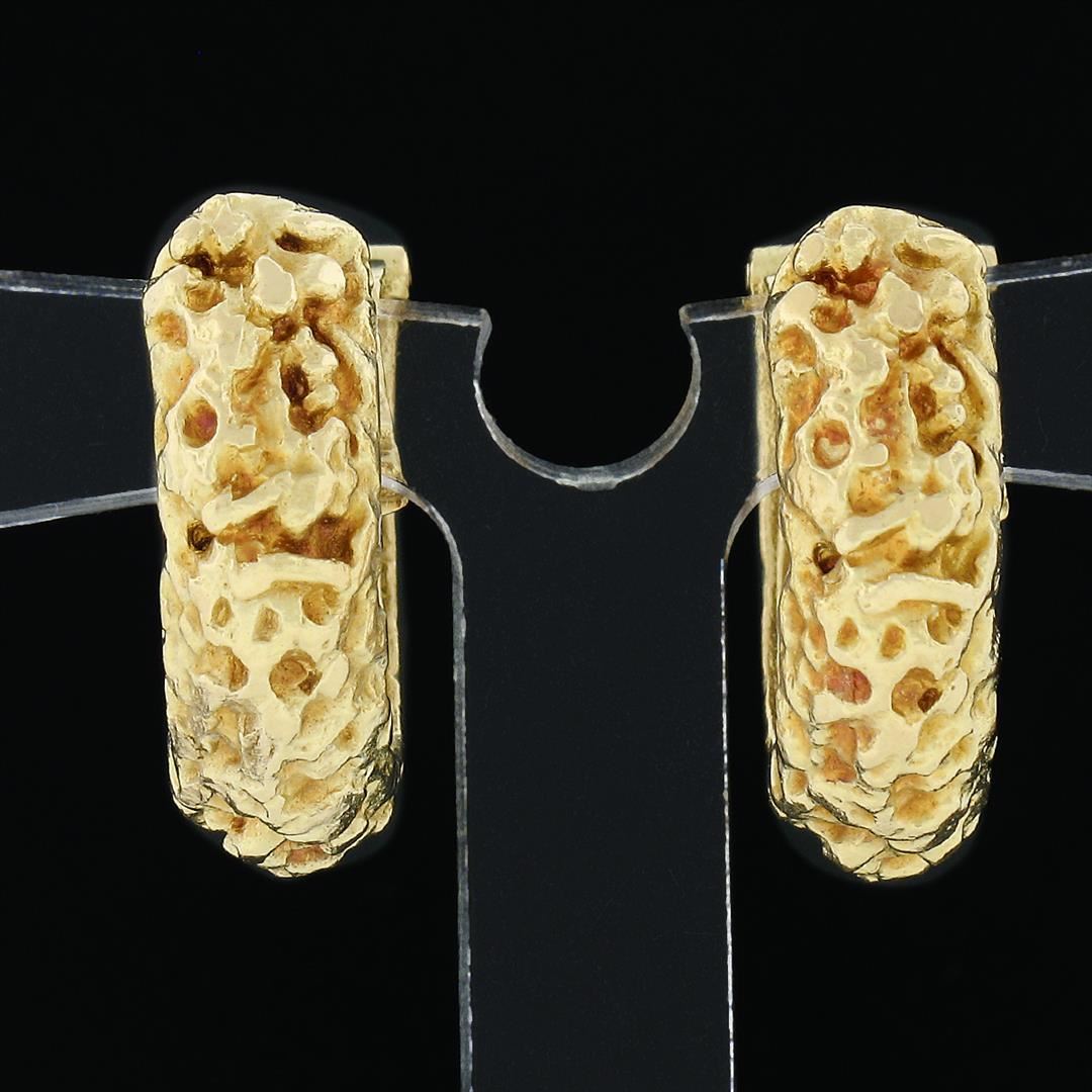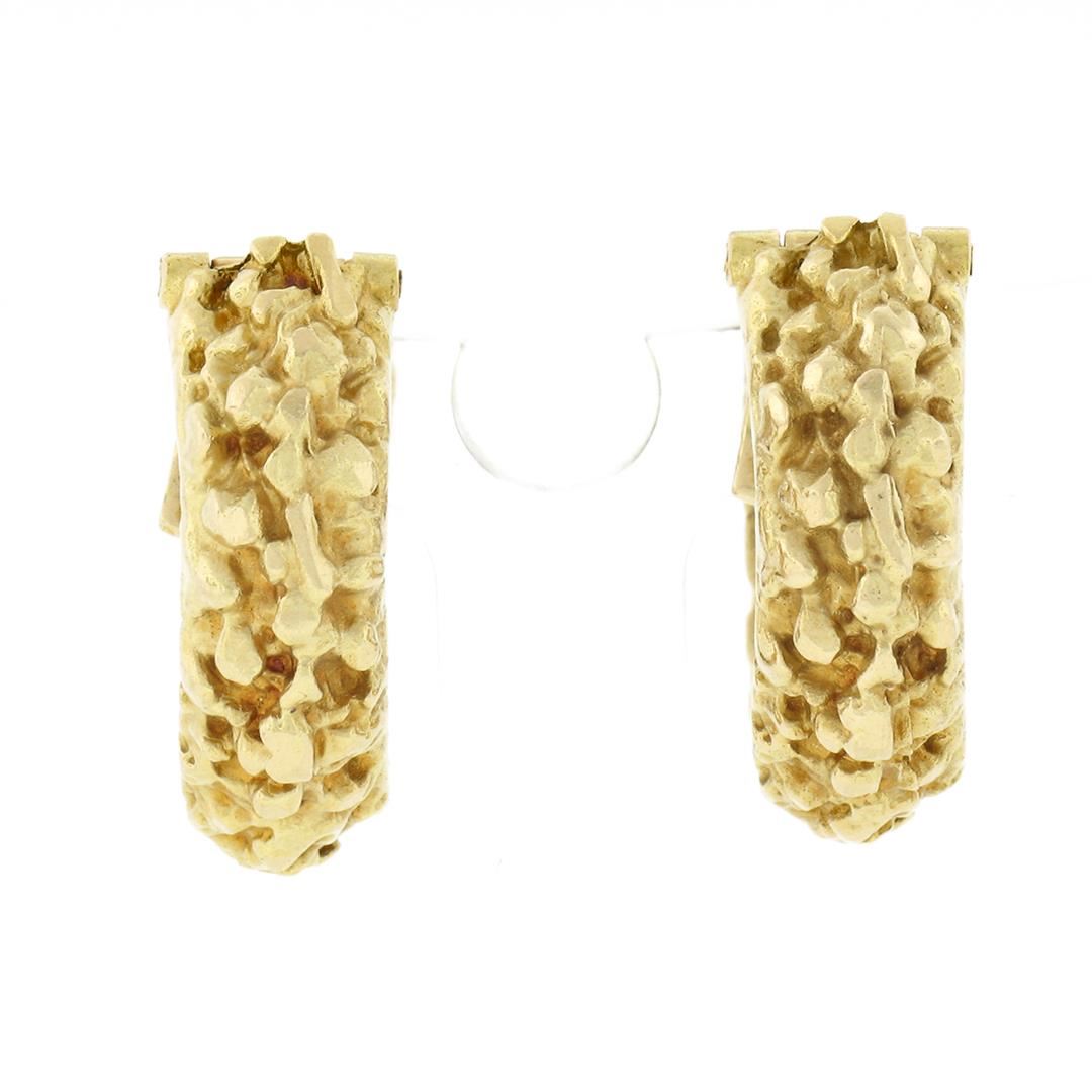A vintage solid 18k yellow gold nugget clip on earrings. The earrings measure approximately 19.70x6.60mm and weigh a total of 14.47 grams.