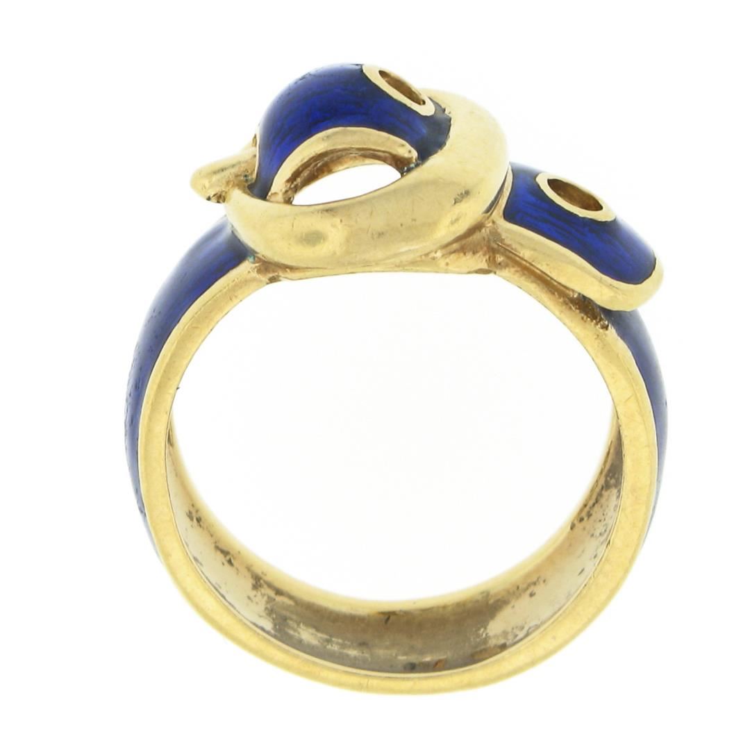A vintage solid 18k yellow gold and enamel work band ring. The ring is size 5.0, weighs a total of 7.37 grams, and measures 12.4mm wide.
