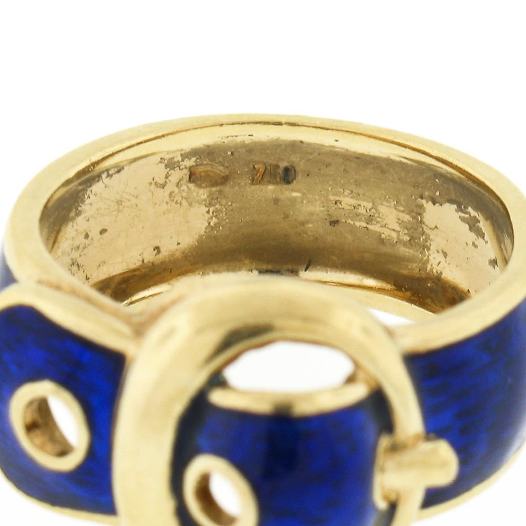 Vintage 18K Yellow Gold Royal Blue Enamel w/ Textured Gold Work Buckle Band Ring