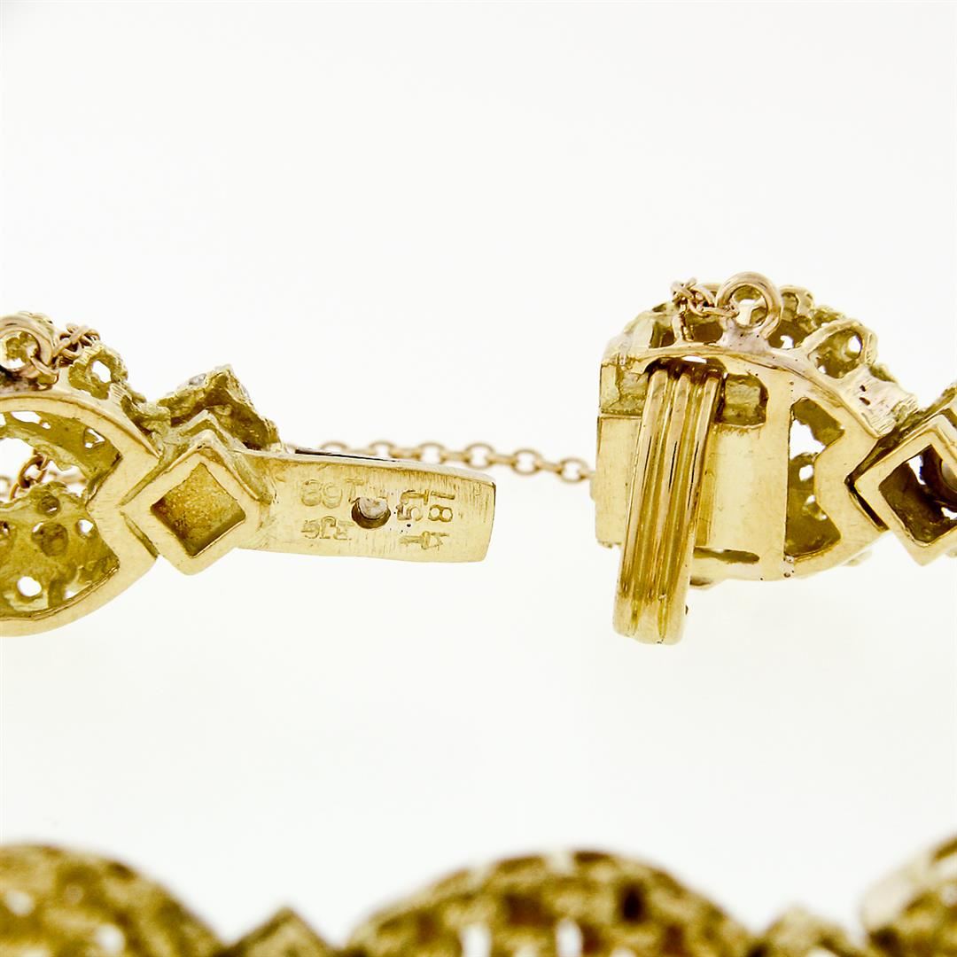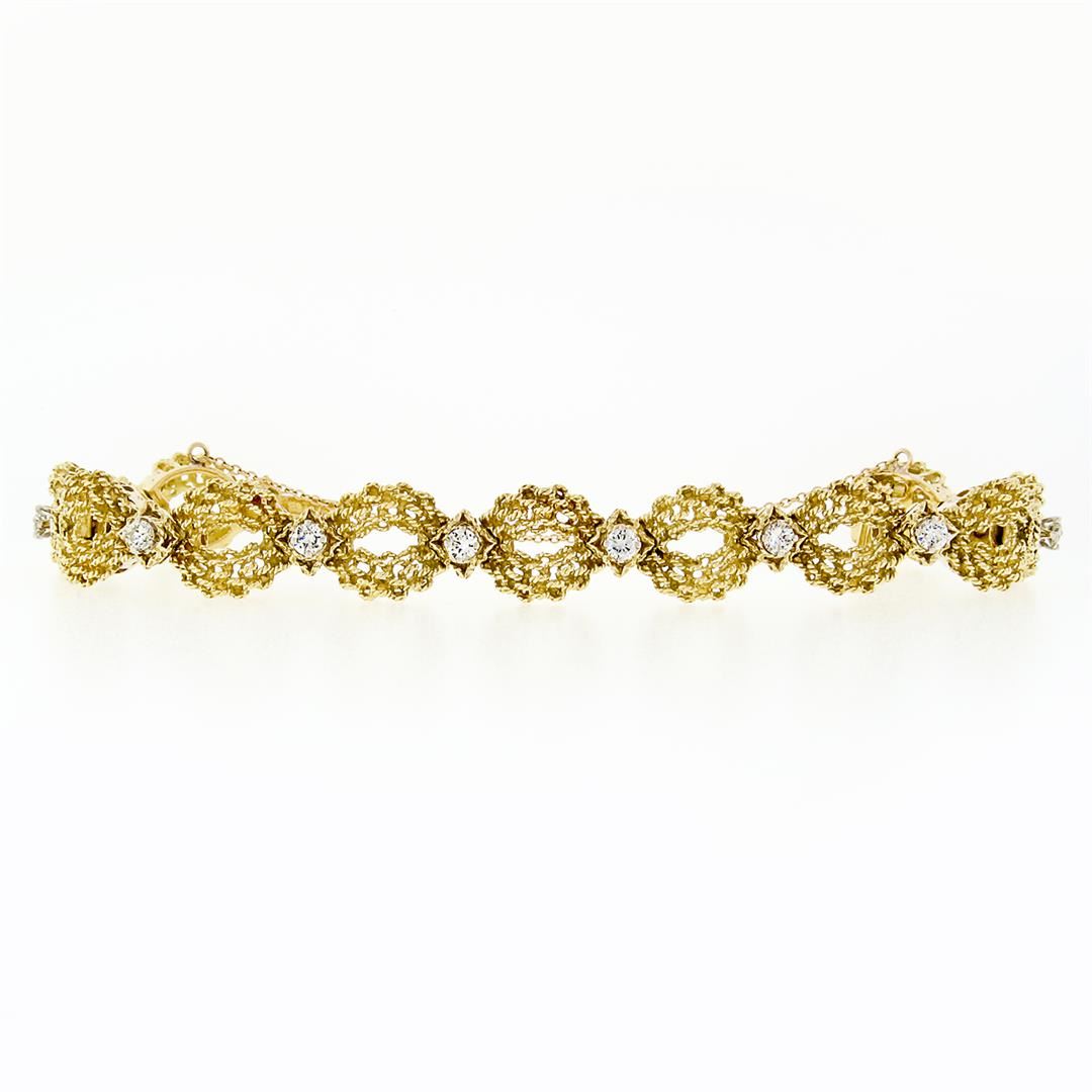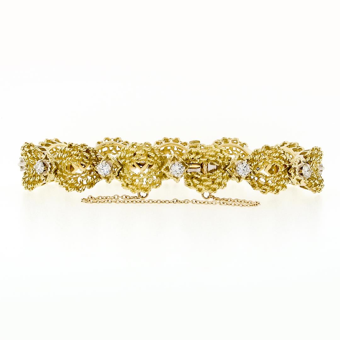 A vintage solid 18k yellow gold puffed link bracelet, with 11 round brillaint cut natral diamonds (F/G - VS1/VS2; 1.51ctw). It weighs a total of 34.50 grams, measures 12.2mm wide, and measures 6.5 inches in length.
